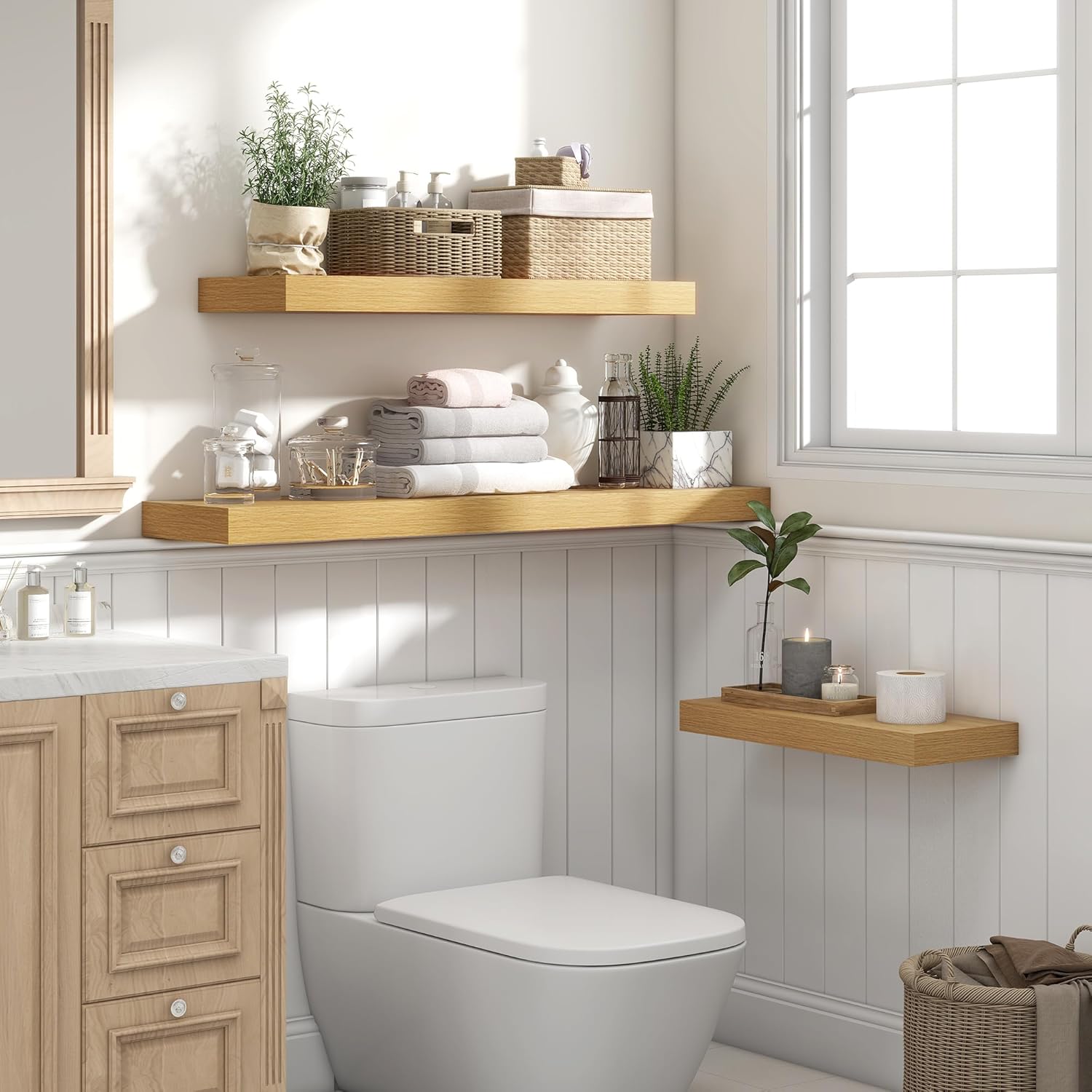 Heimlove 48" Floating Shelves for Wall,10 Deep Rustic Wood Storage Wall Shelves with Heavy Duty Brackets for Bathroom,Bedroom,Kitchen,Living Room,Office,Oak Color