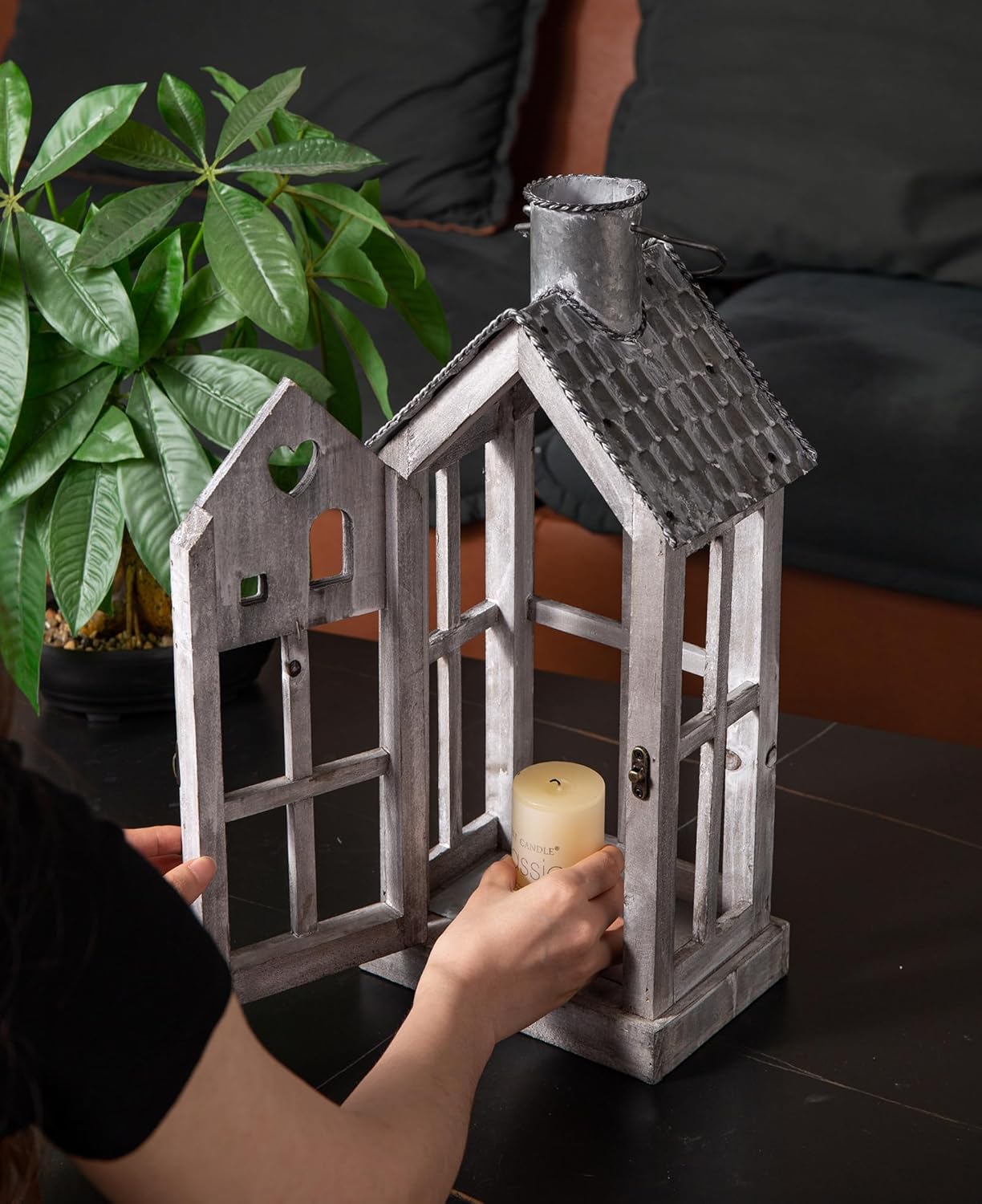 - MODERN FARMHOUSE DECOR β This rustic wooden lanterns feature classic house shape with metal corrugated roofs and heart accents in rustic graywash tone that look antique, achieve a modern farmhouse charming and French country touch to your home, decorate your porch, patio or garden more special, chic and vintage.