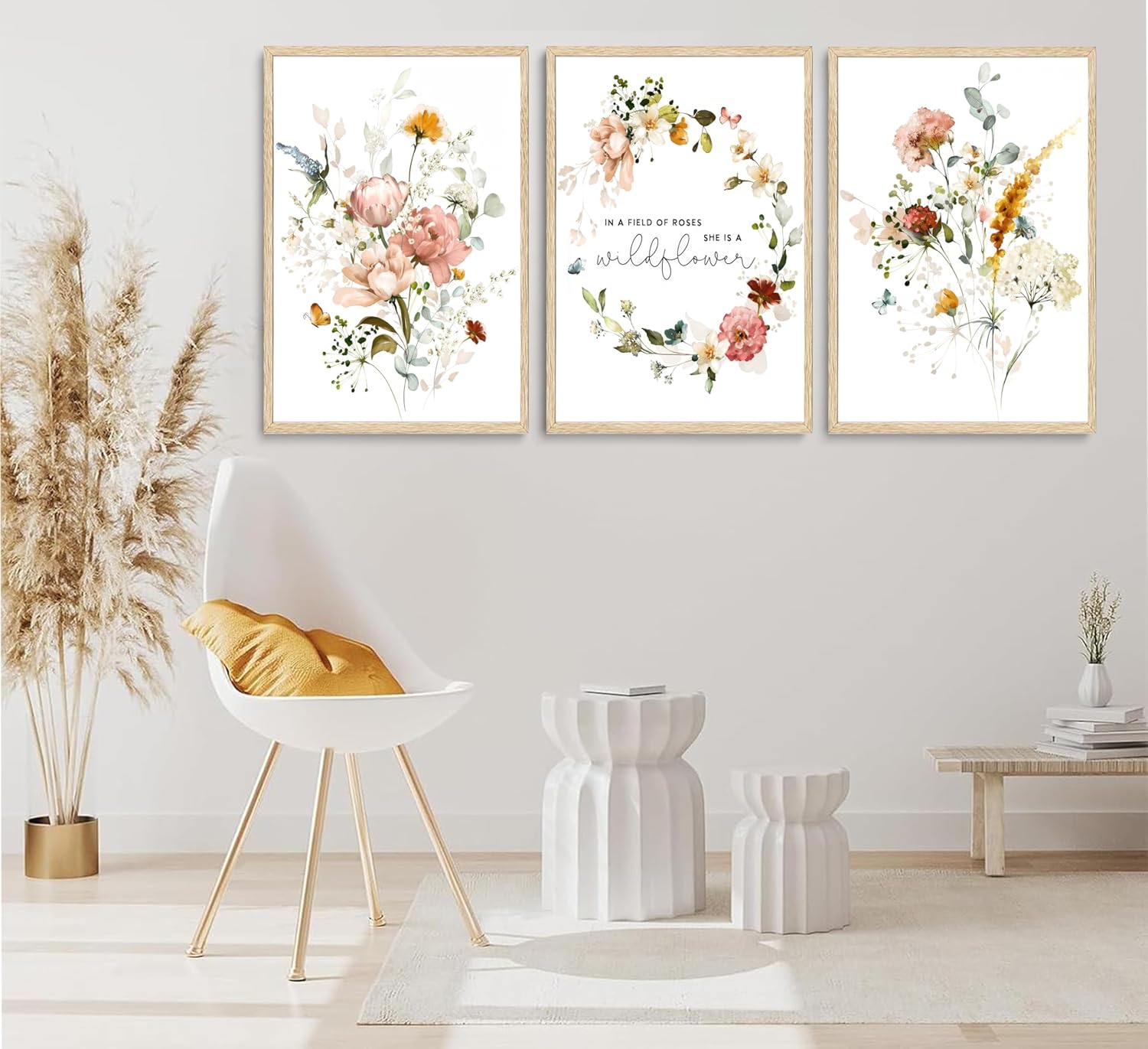 - 【Pink Wildflowers Wall Art Size】:16x24in;Discover the charm of our Wildflower Wall Art, featuring a stunning set of 3 watercolor flower canvases, No frame included. You can put our prints in a beautiful frame.