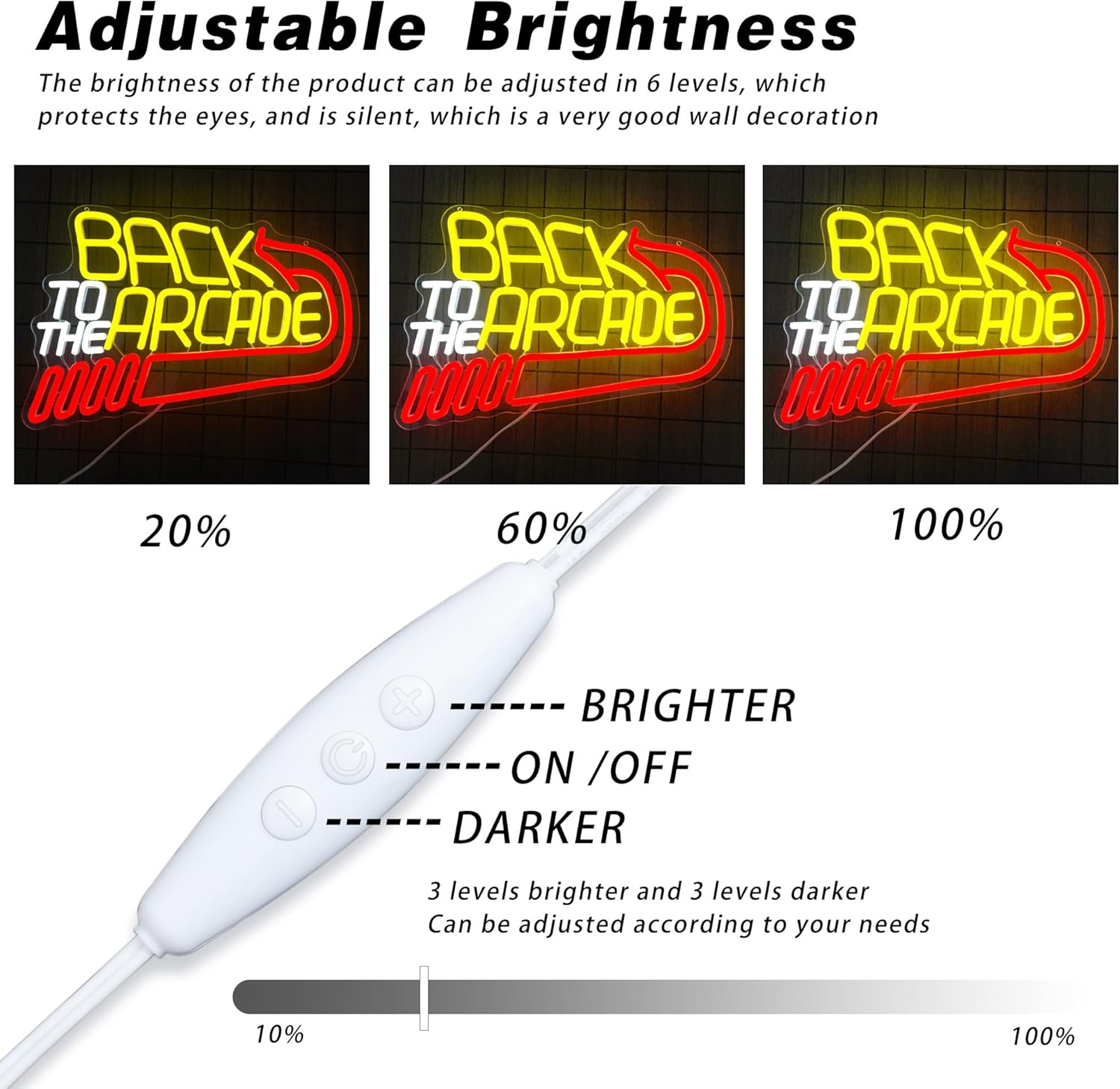 Retro Arcade Neon Sign Large Back to the Arcade Neon Light Dimmable Gamer Neon Signs for Wall Decor USB Powered Vintage Gaming Signs for Bar Game Room Man Cave(15.7 * 10.7inch)