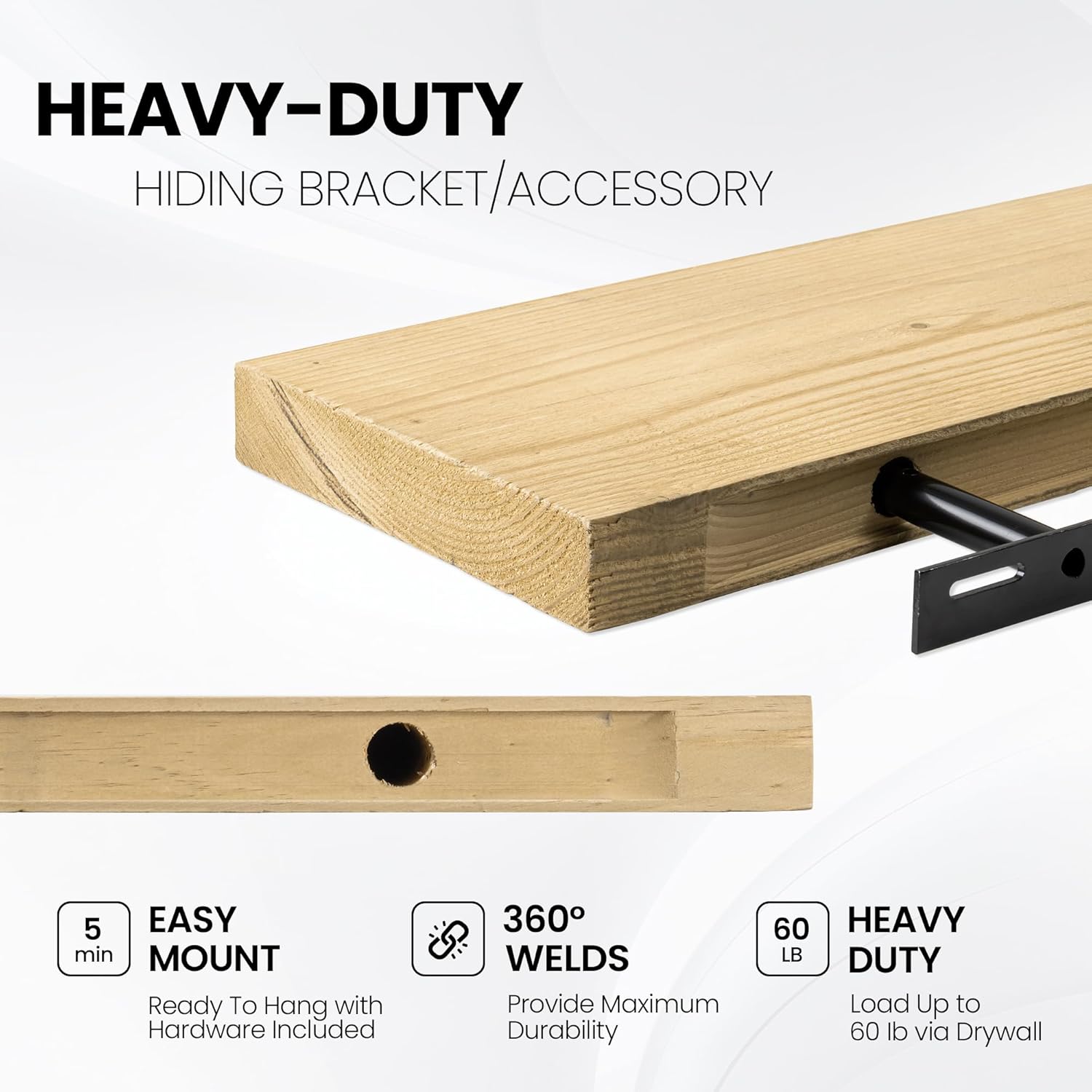 Fun Memories Floating Shelves for Wall Decor, 72"x8" Rustic Reclaimed Wood Shelves, Heavy-Duty Wall Mounted Shelves with Invisible Brackets for Living Room, Bedroom, Kitchen, Natural Finish