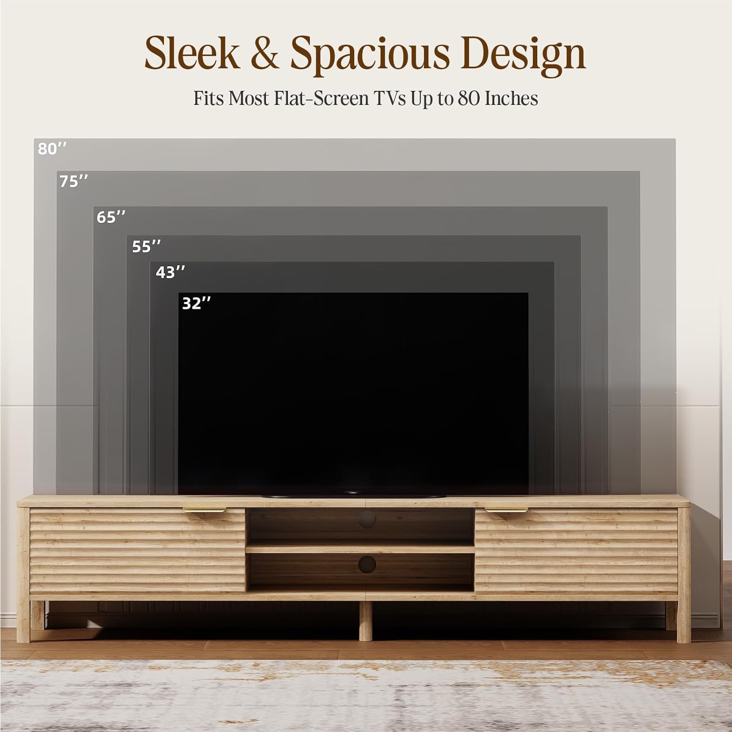 - Compatible with TVs up to 80 Inches: Designed for televisions 80" and under, with a sturdy top surface for secure placement. The open layout easily accommodates media devices and sound system