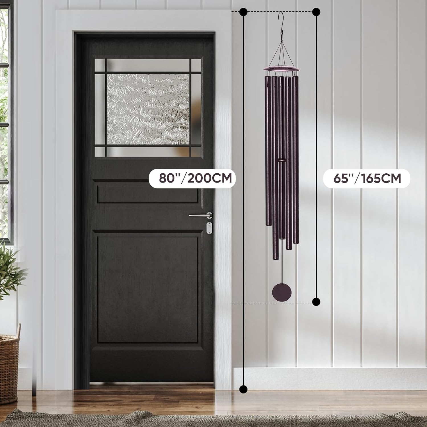 - [Multi-Scene Decor] With an overall hanging height of 65 inches, this low tone wind chimes is perfect for outdoor decor like tree, patio, balcony, porch or memorial room. It strikes a balance between being noticeable and unobtrusive.