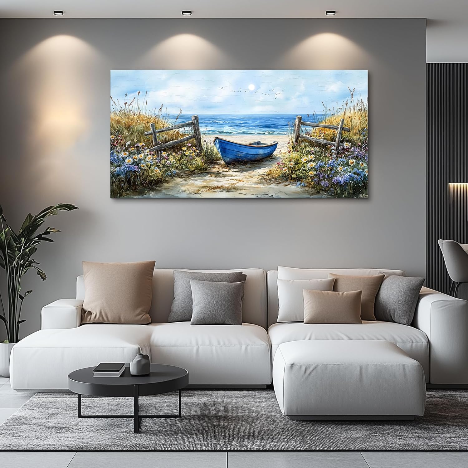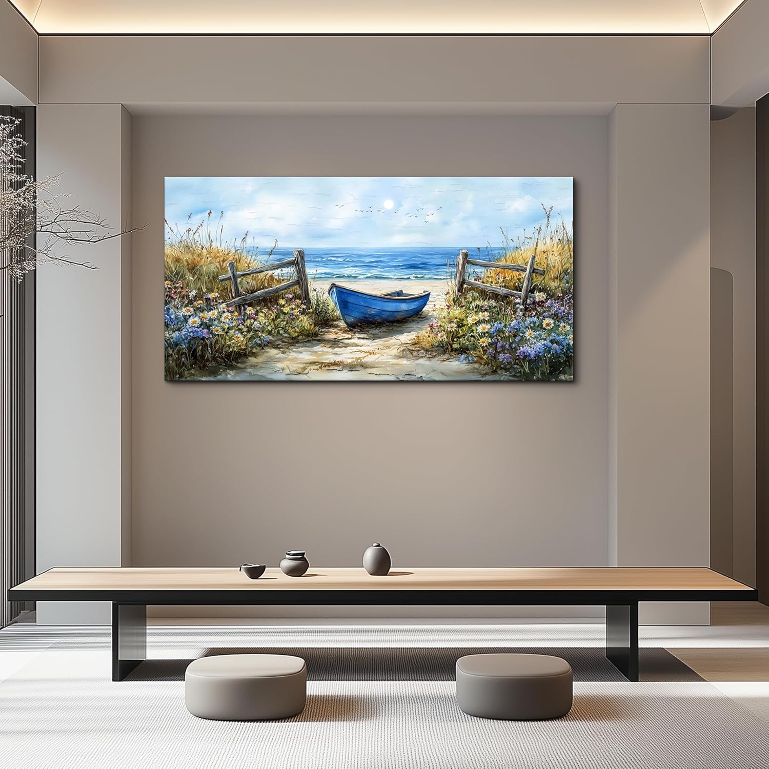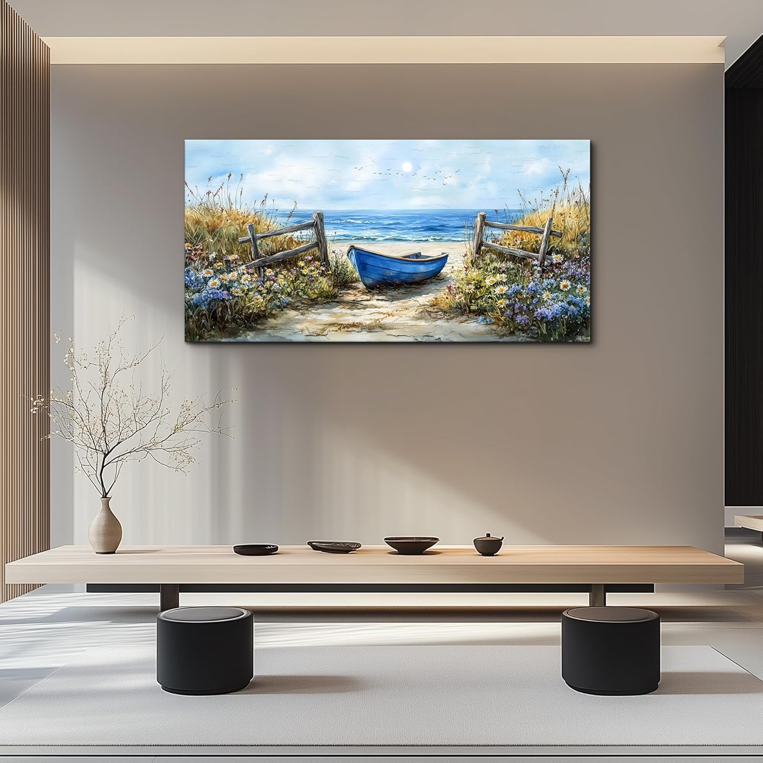ZUITINGHUA Canvas Wall Art For Living Room Large Wall Decor For Office Bedroom Decorations Seaside Landscape Pictures Boat Painting Artwork Room Wall Mural Aesthetic Home Decor 30x60 In