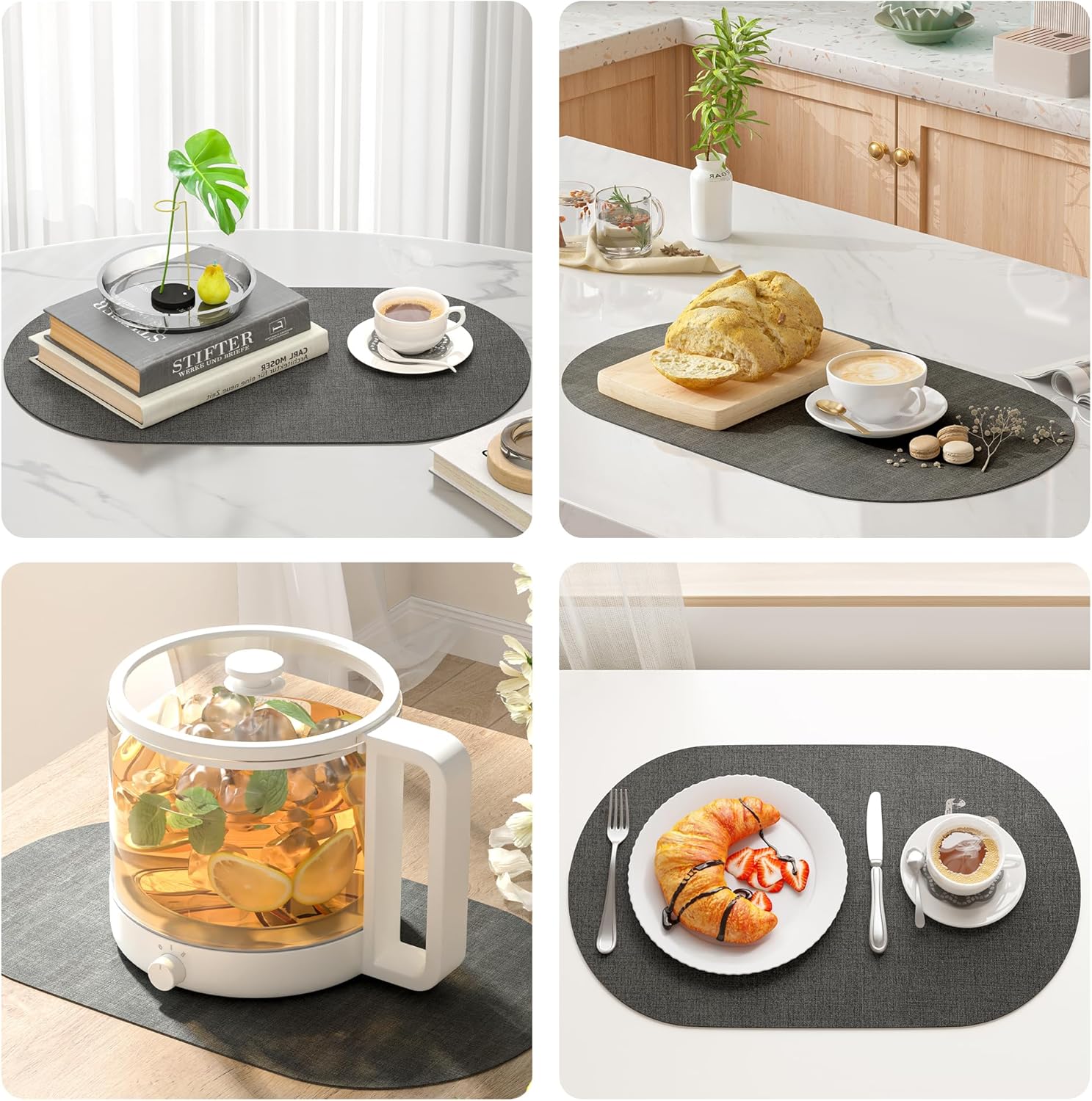 DOLOPL Placemats Set of 6, Oval Reversible Wipeable & Heat Resistant Place Mats, Modern Faux Leather Table Mats for Kitchen, Neutral Tablemats for Dining Table Decor, Wedding, Party(Charcoal)