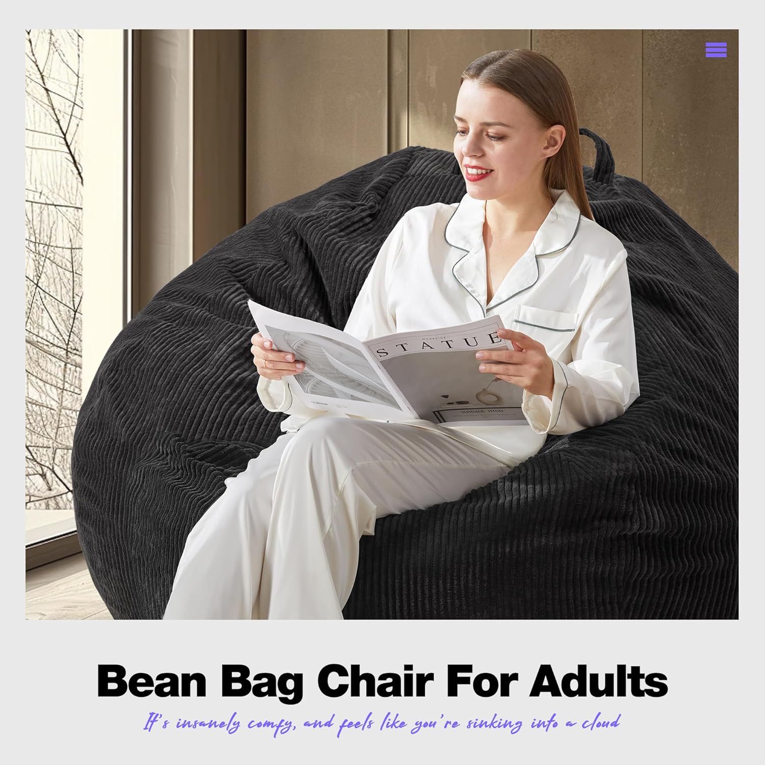 - Choose Your Comfort: Whether you're moving adult bean bag chairs from the living room to the bedroom or taking it outdoors, our oversized bean bag chair is lightweight and easy to carry with its built-in handle, making it the ideal portable seat.