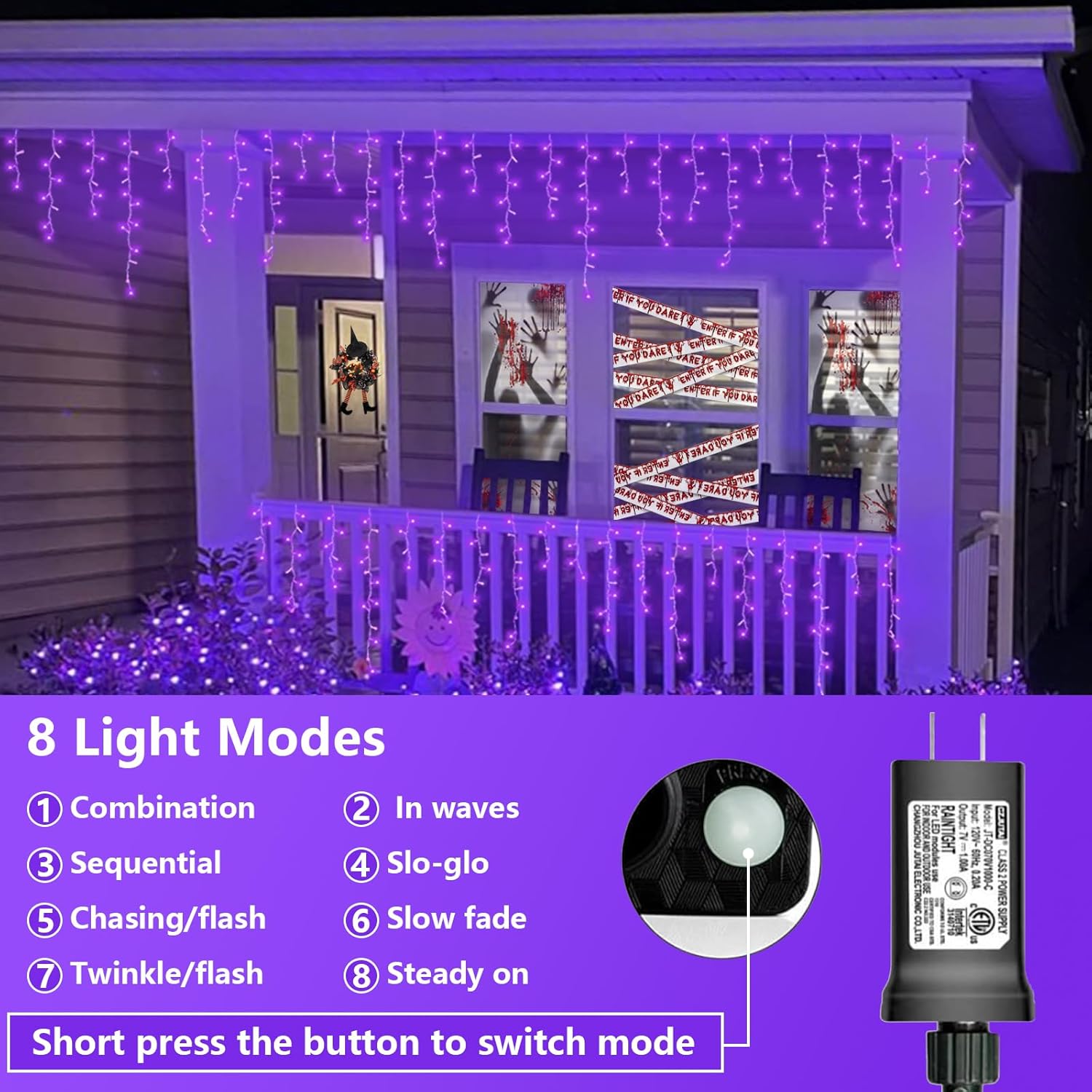 - Connectable Purple Icicle Lights: The 33ft 400 LED purple icicle lights has 80 drop with four different lengths which are enough to display pretty for your halloween decor. When you decorate with our icicle lights, each icicle lights has end-to-end connection, bright a terrifying night. Icicle lights are connectable, it can cover a larger area.