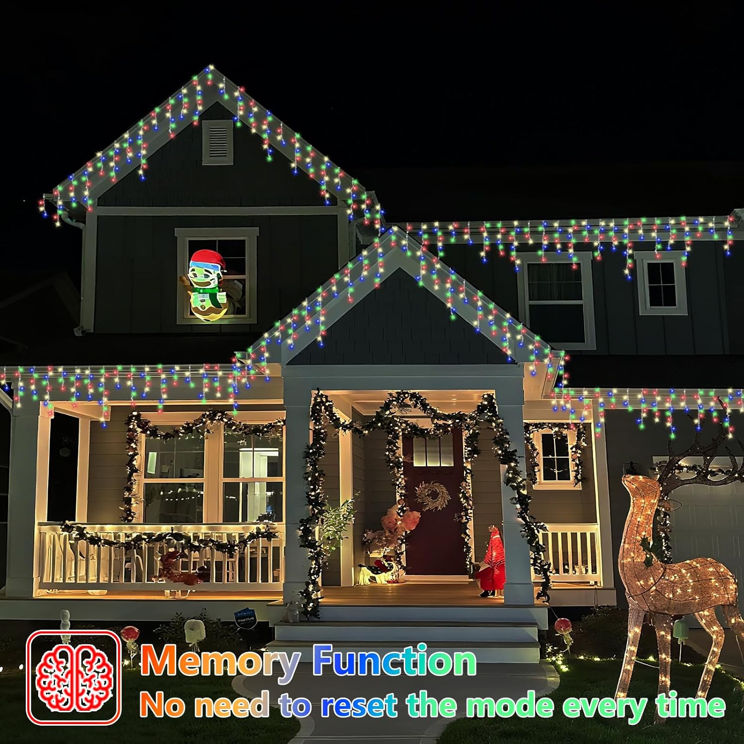 QITONG Multicolor Icicle Christmas Lights Outdoor, 33ft 400 LED Icicle Lights Indoor, Clear Wire Connectable String Lights Plug in with 8 Modes