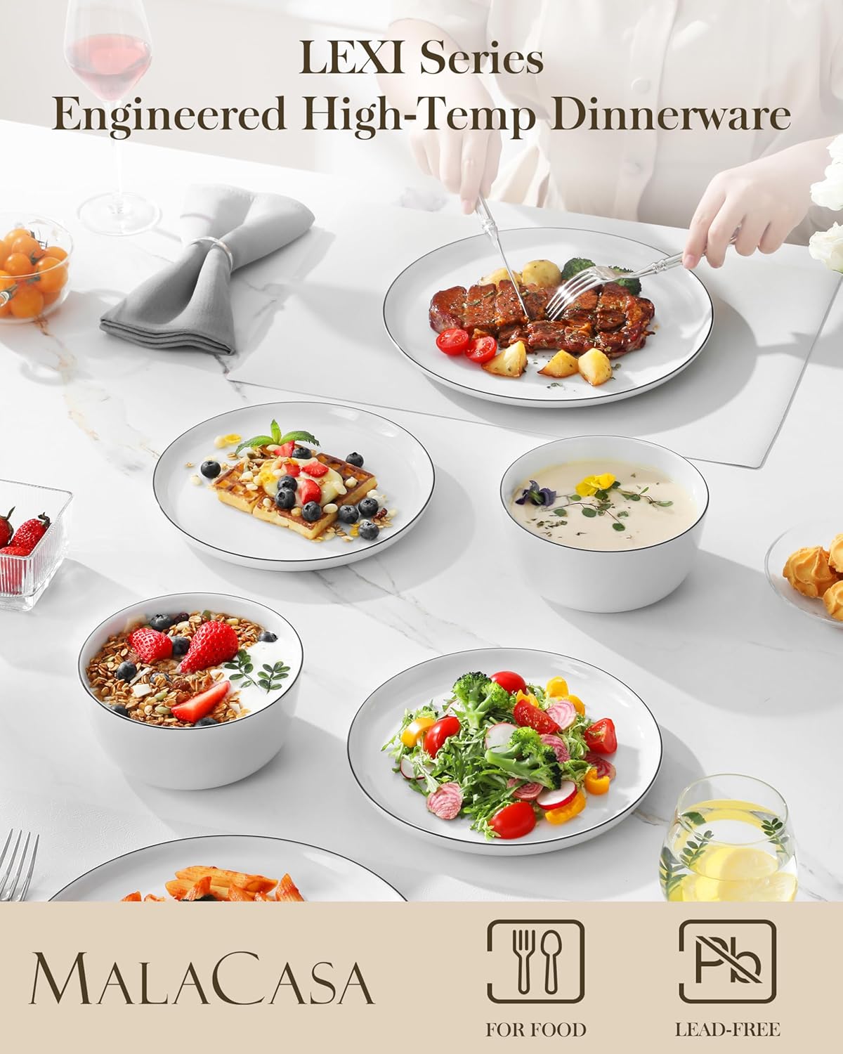 - 【ECO-FRIENDLY & HEALTH-CONSCIOUS】Crafted from premium natural kaolin clay and fired at ultra-high temperatures, LEXI dinnerware is 100% lead-free & cadmium-free. Designed to meet international safety standards including FDA requirements for food safety, offering peace of mind with every meal.