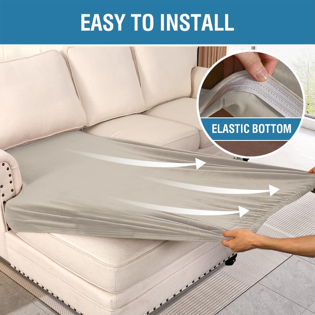 - STAY IN PLACE: Featuring non-skid thick elastic bottom, our cushion slipcover can stay tight with no snag, no wrinkling, shifting or slipping on both leather and cloth sofa. Check the installation guide carefully, it can be finished within 3 minutes by one person. It is very easy to put on and take down. (Installation Instructions Included)