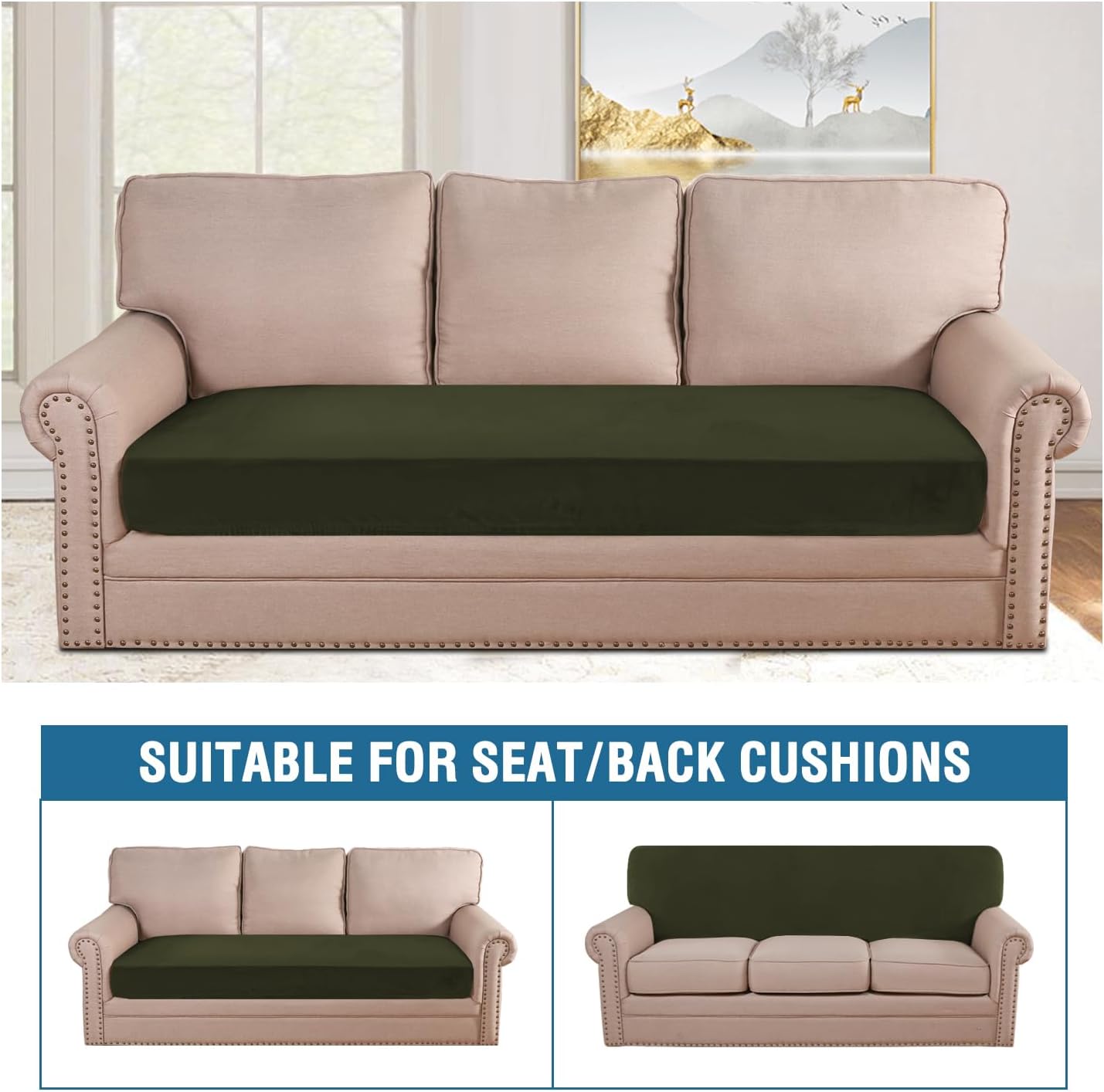 H.VERSAILTEX Velvet Stretch Individual Couch Cushion Cover Plush Cushion Slipcover for Loveseat Sofa Cushion Furniture Protector Seat Cushion Sofa Cover (1 Piece Sofa Cushion Cover, Olive)