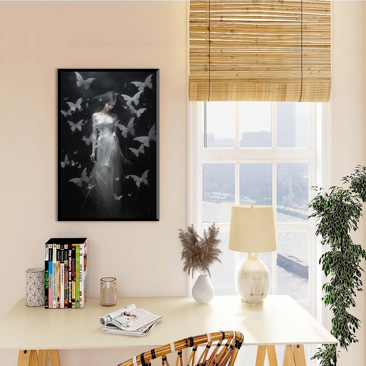 JFHCQJPK Vintage Gothic Feminine Canvas Wall Art Print Butterfly Poster Moody Female Wall Art Retro Artwork Dark College Decor for Home Bedroom8x12in Metal blackFramed