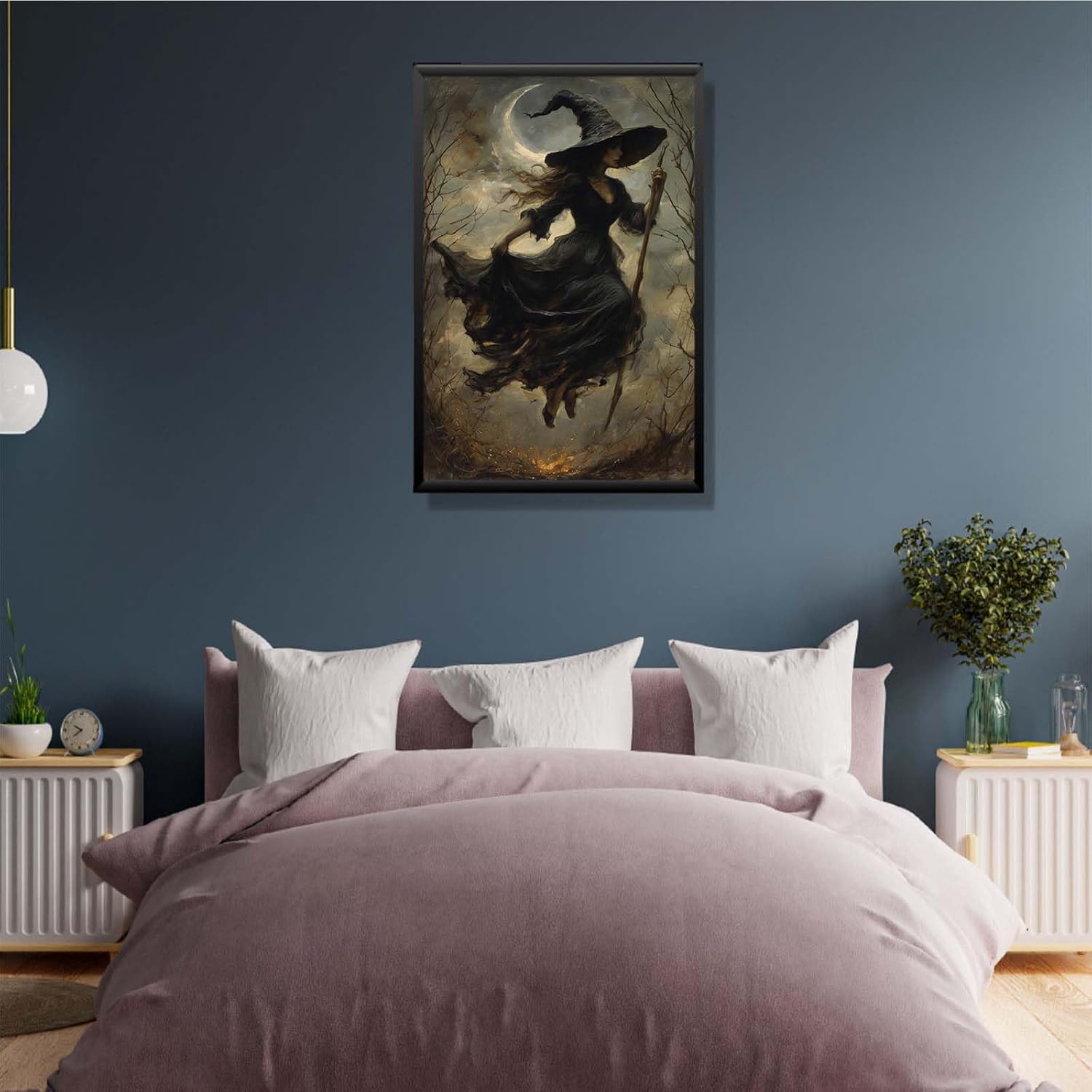 JFHCQJPK Witch in the Forest Halloween Print Wall Art Poster Witch Decor Vintage Print Dark College Wall Art Victorian Gothic Room Decor Canvas Wall Print12x16in Metal blackFramed