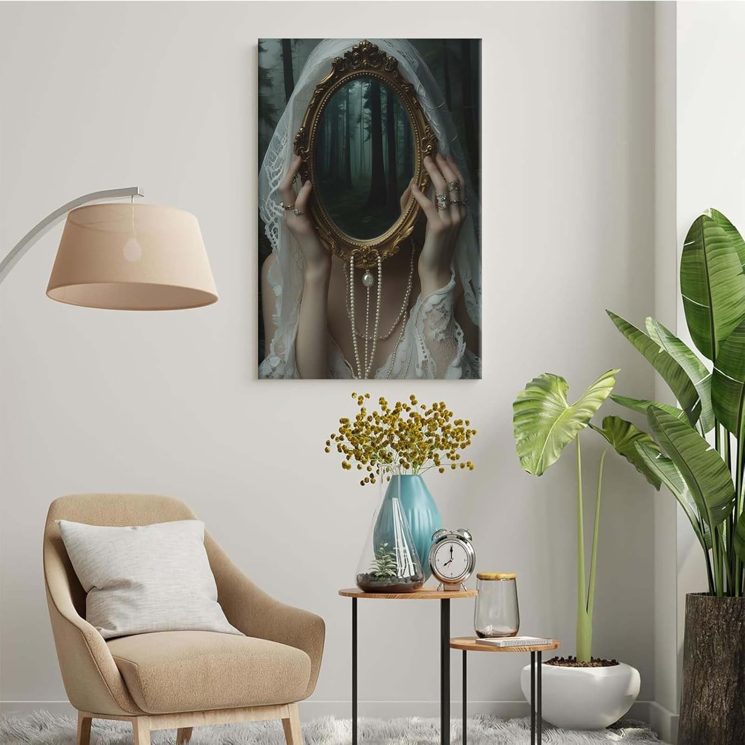Mirror face covering dark art poster print melancholy gothic painting vintage feminine print victorian style decoration antique art8x12in Frameless