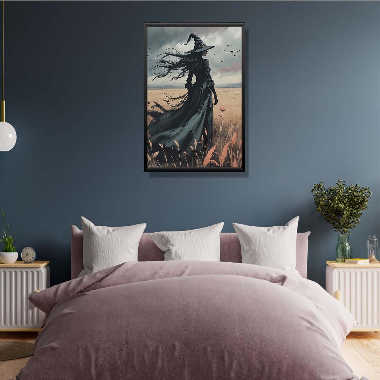 JFHCQJPK Gothic Decor Canvas Wall Art Witch in Rice Field Halloween Art Decor Print Nature Print Victorian Home Bedroom12x16in Metal blackFramed