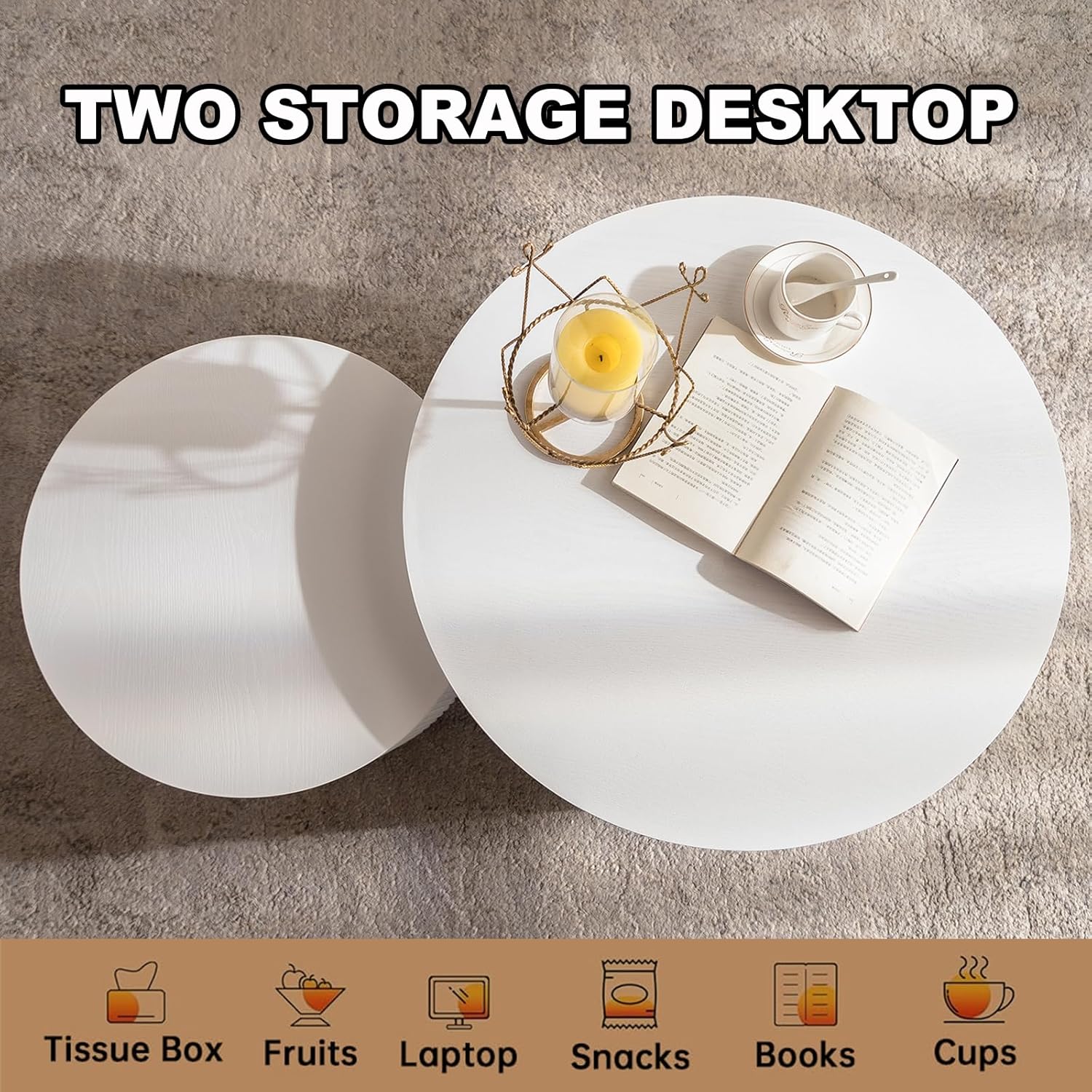 - Elegent and Sturdy - This circular coffee and end table sets adopt MDF material, multi-step finish process achieves both good looks and superior durability, provides a smooth wooden surface which is amazing to touch. The round end tables also can hold 300lbs which is strong and sturdy enough for daily use