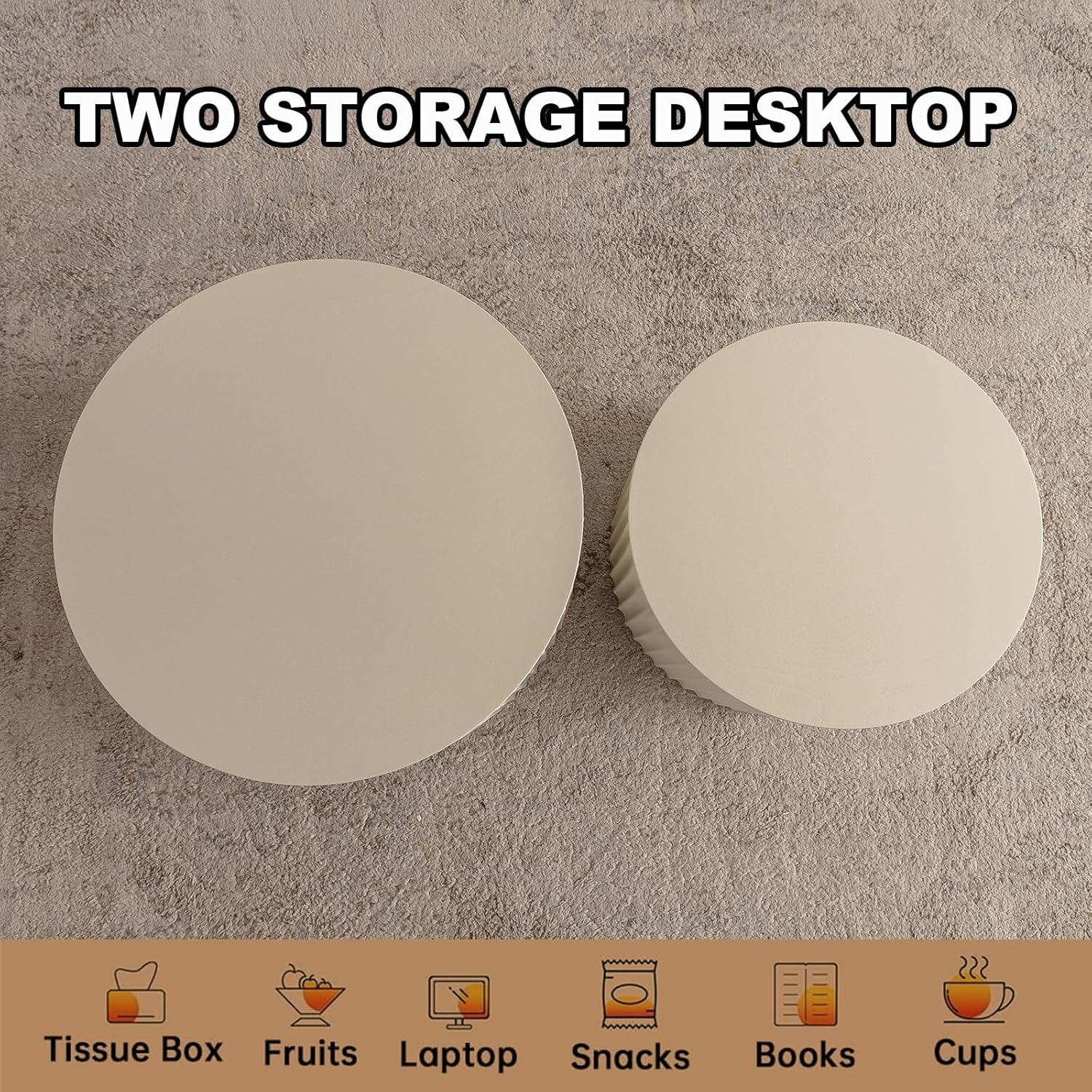 Round Nesting Coffee Table Set of 2, Modern Coffee and End Table Set Small Circle Wooden Drum Side Table Accent End Tables for Living Room Office, No Assembly,Cream Small