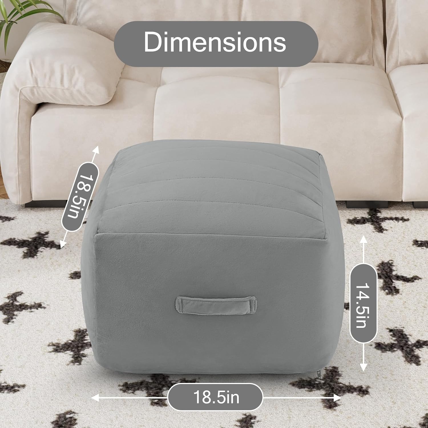 - Modern Square Pouf Ottoman: This soft foot stool pouf blends modern design with plush comfort. Perfectly sized at 18.5x18.5x14.5 inches, this stuffed ottoman foot rest is a chic choice for the couch, sofa, and living room