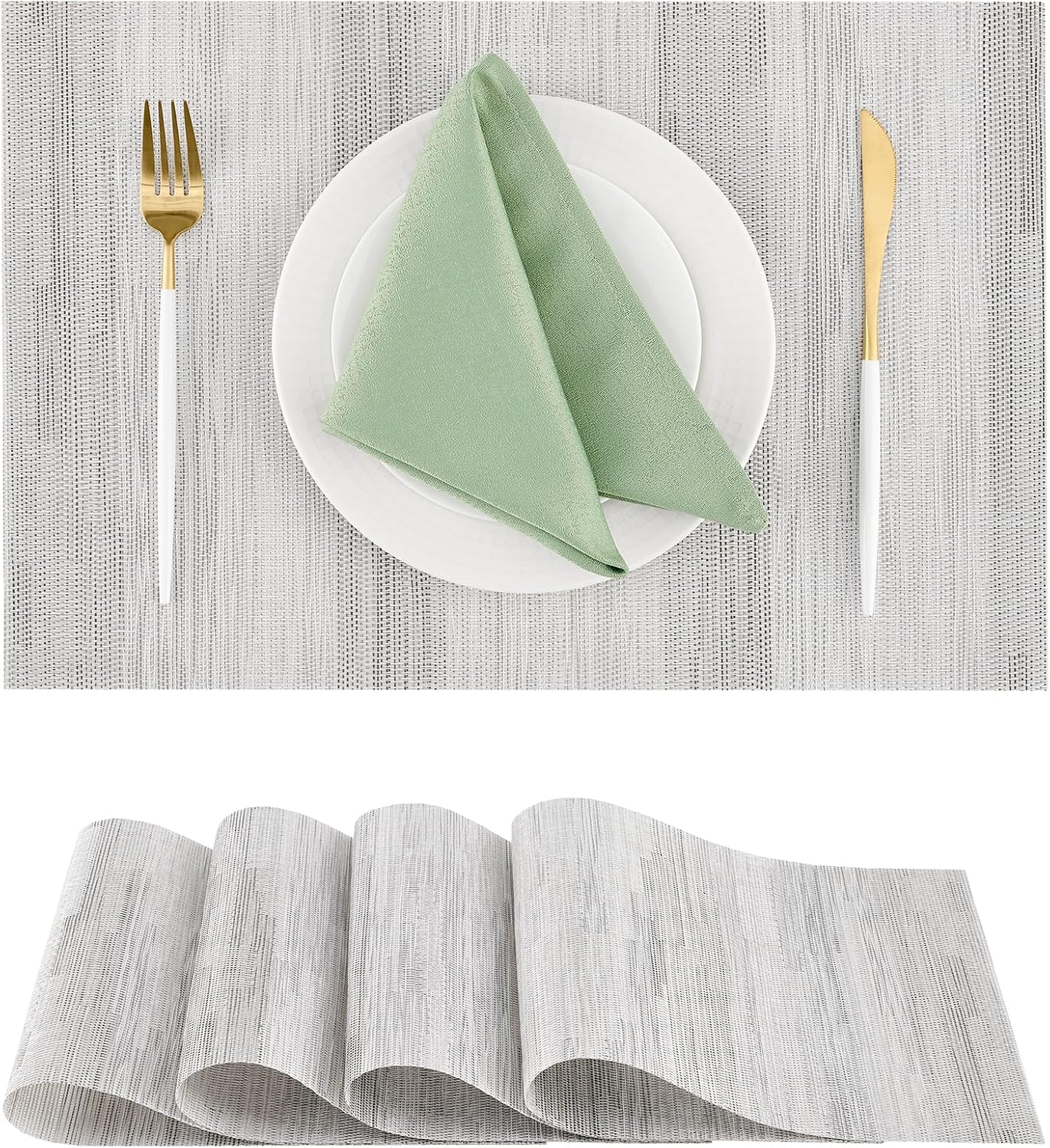 - Elegant and Practical Design: With a luxurious vinyl woven texture, precision cutting, and heat-trimmed edges, our double-sided placemats offer a sophisticated and practical solution. They provide a non-slip surface, resist fading, and are easy to clean, elevating your dining experience
