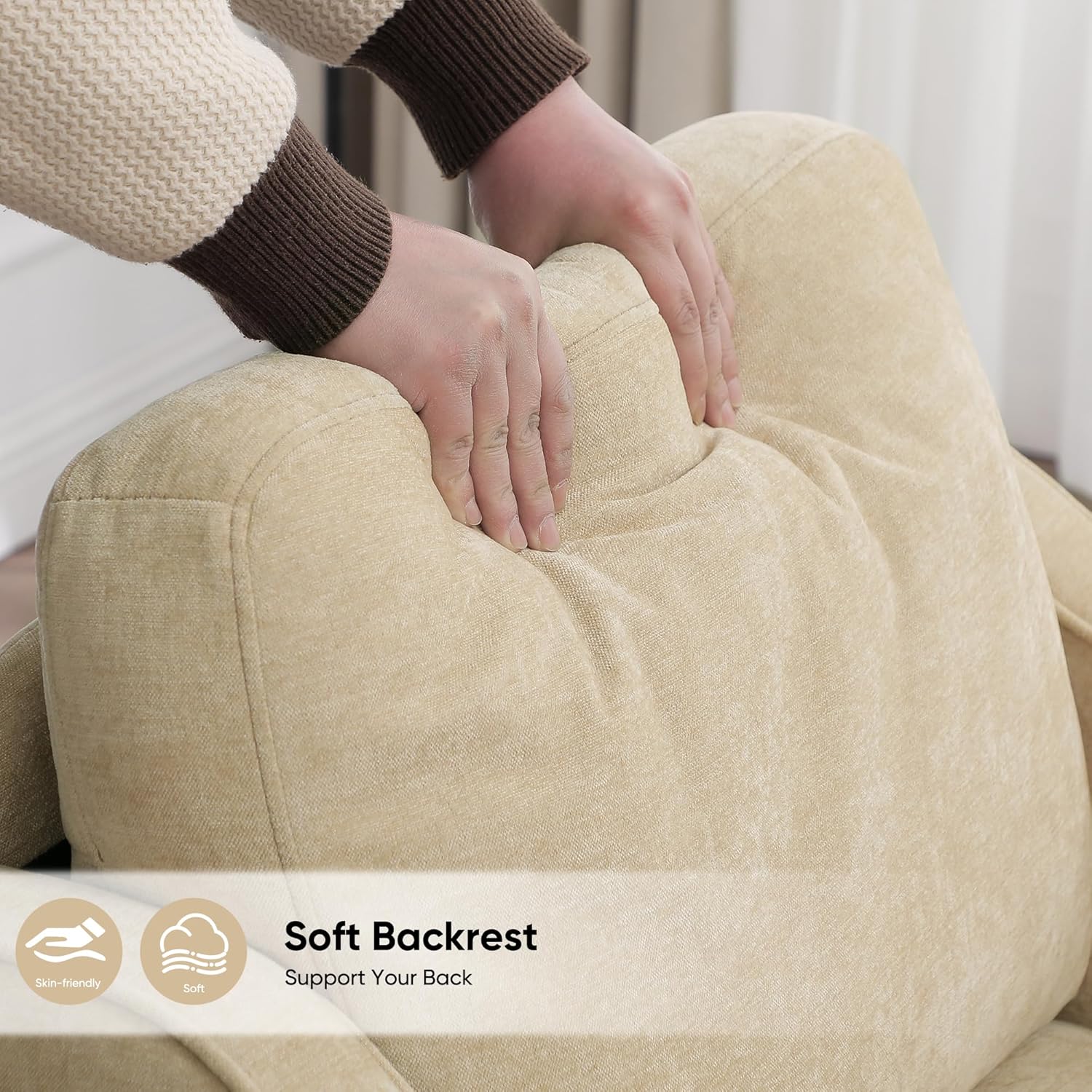 - ăComfortable SeatingăThe 5.7" thick seat of this living room chair are padded with high-density foam for superior comfort. The armchair with 115° seating angle offers enhanced support, reduces lumbar fatigue and ensures a comfortable seating experience. The armrests are perfectly aligned with your arms, providing your hands with plenty of support for long hours of reading, resting or relaxing.