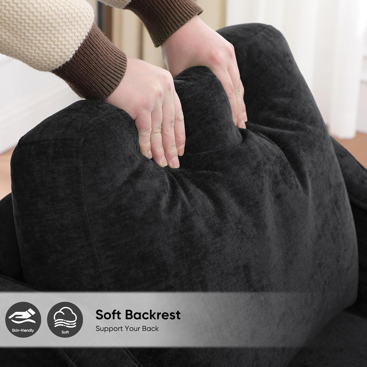 - ăComfortable SeatingăThe 5.7" thick seat of this living room chair are padded with high-density foam for superior comfort. The armchair with 115° seating angle offers enhanced support, reduces lumbar fatigue and ensures a comfortable seating experience. The armrests are perfectly aligned with your arms, providing your hands with plenty of support for long hours of reading, resting or relaxing.