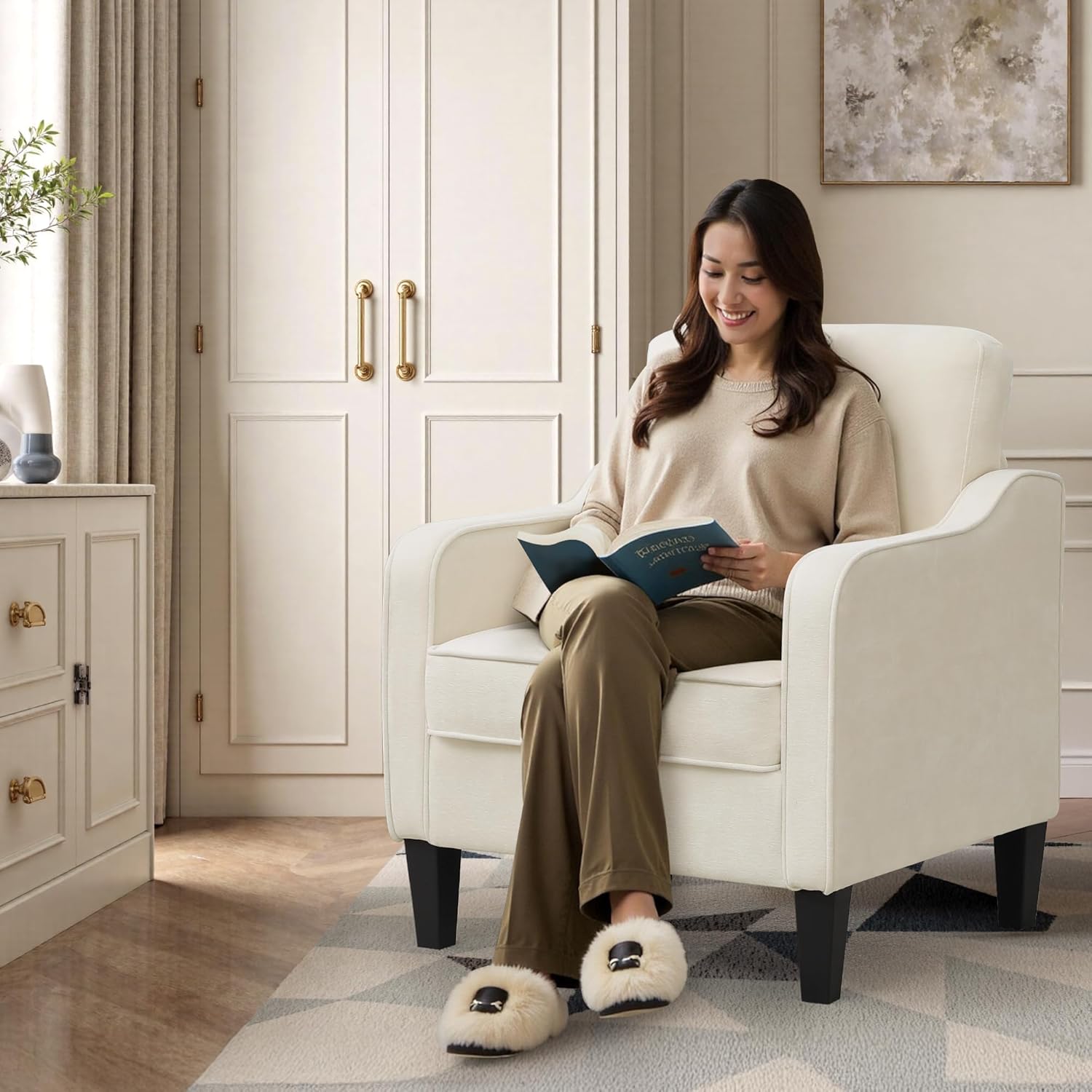 Accent Chair for Living Room, Mid Century Modern Reading Chair for Bedroom, Upholstered Armchair with Side Pockets, Comfy Single Sofa Side Chair for Office, Apartment, Small Room, Beige