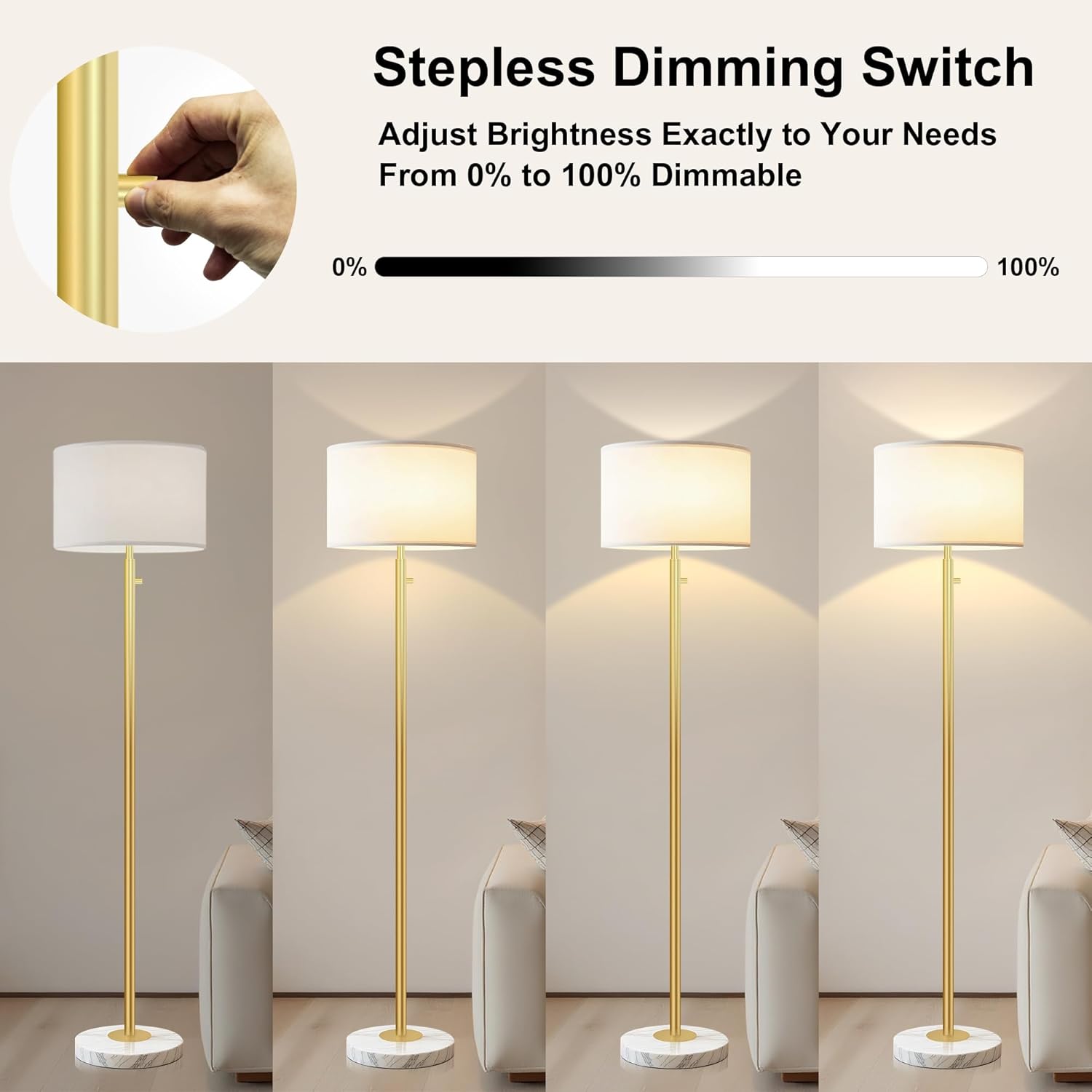 Floor Lamp for Living Room,Dimmable Gold Floor Lamp,Modern Standing Lamp with Marble Base,Tall Standing Lamp for Bedroom, Reading,Office & Kids' Room,LED Bulb Included(Gold)