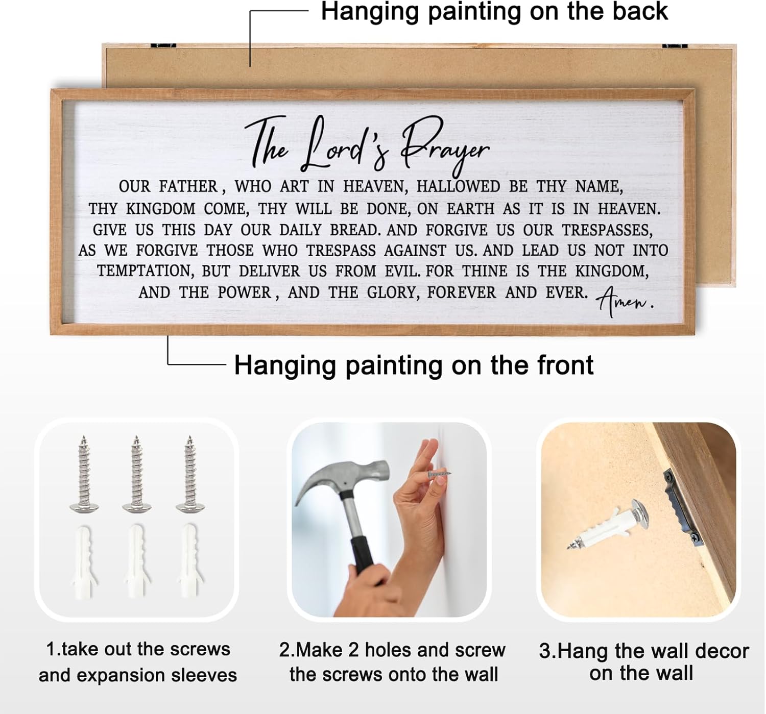 - 【Easy Installation】The inspirational our father prayer wall decor is equipped with plastic expansion and self-tapping screws, which will take you less than ten minutes to install it on the wall.
