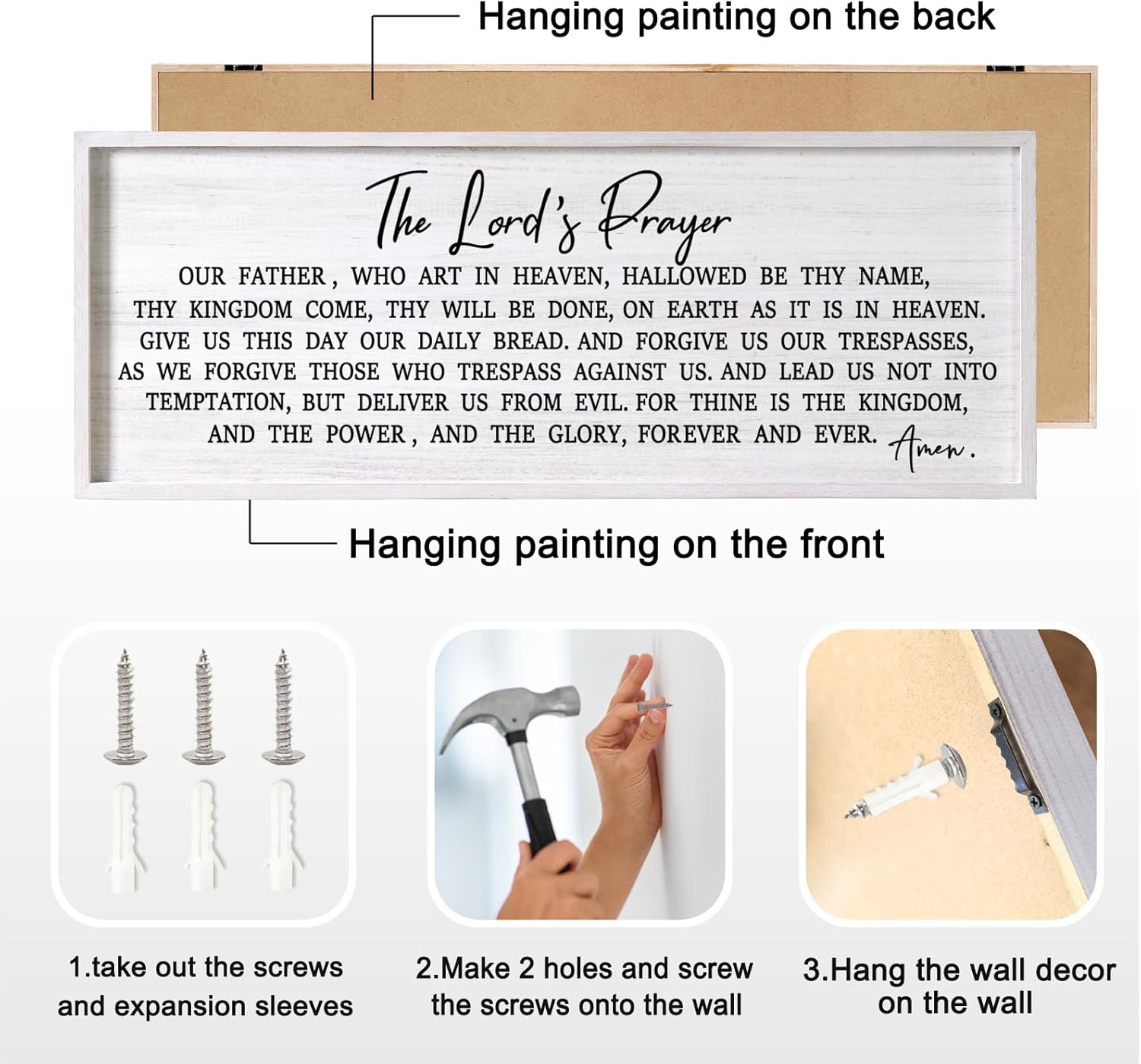 - 【Easy Installation】The inspirational our father prayer wall decor is equipped with plastic expansion and self-tapping screws, which will take you less than ten minutes to install it on the wall.