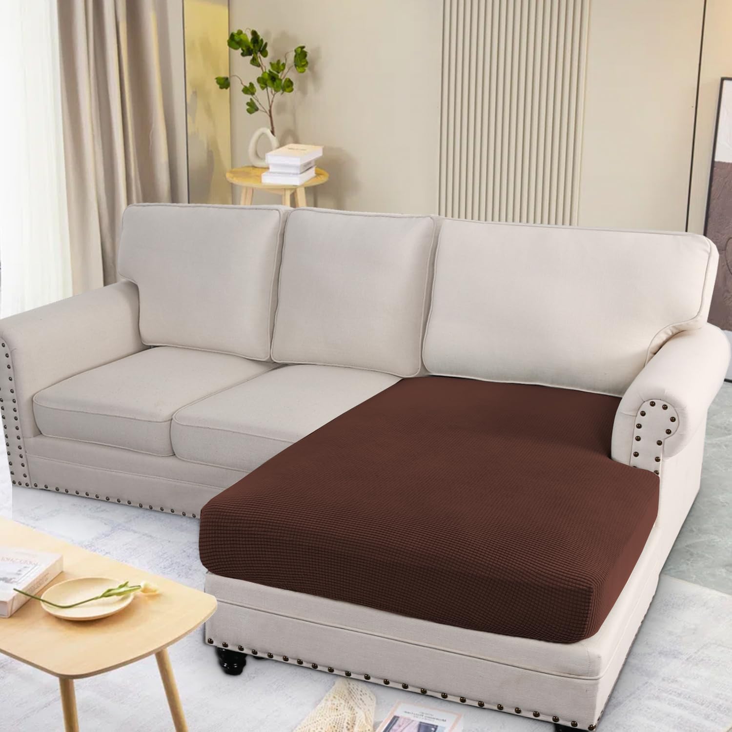 - GREAT FIT: Set of 1. This innovated cushion slipcover is crafted from durable and soft high stretch knitted jacquard fabric. Large Size Chaise Lounge Cover for Both Left/Right L Shaped Couch(fits up to 38-45 inch width, 64-72 inch depth, 3-8 inch thickness). Feature one-size-fits-most, kindly measure before ordering