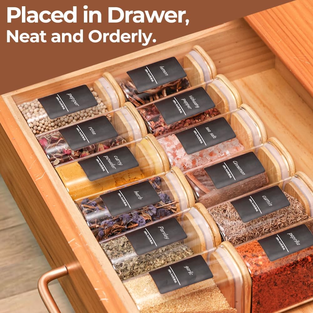 - Better Sorting with Labels: Glass spice jars come with writable, erasable and reusable labels, easy to read and organize at a glance; Blank stickers let you DIY your own jars—create a curry mix jar, white pepper and chili powder jar, or even a tea jar
