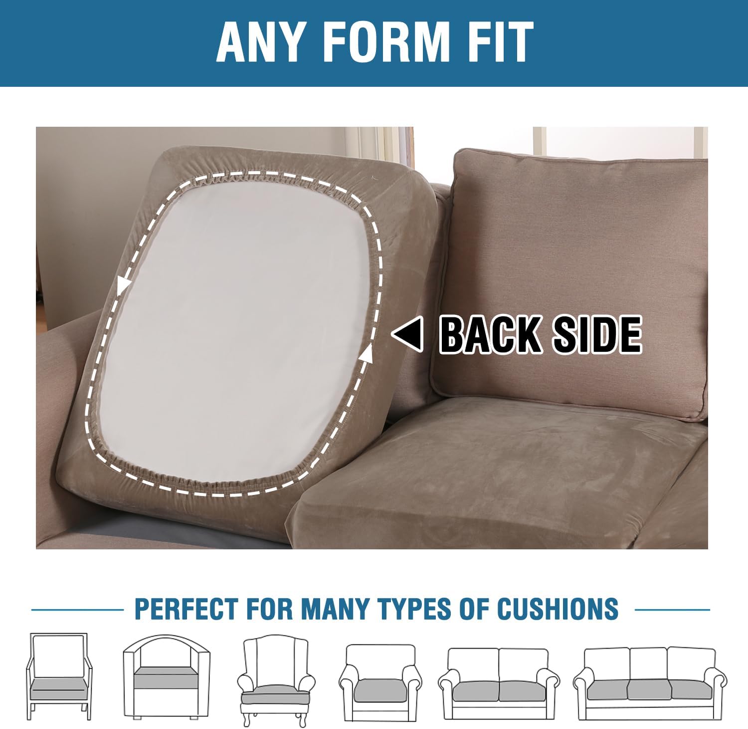 H.VERSAILTEX Velvet Stretch Couch Cushion Cover Plush Cushion Slipcover for Chair Loveseat Sofa Cushion Furniture Protector Seat Cushion Sofa Cover (3 Piece Sofa Cushion Covers, Mocha)