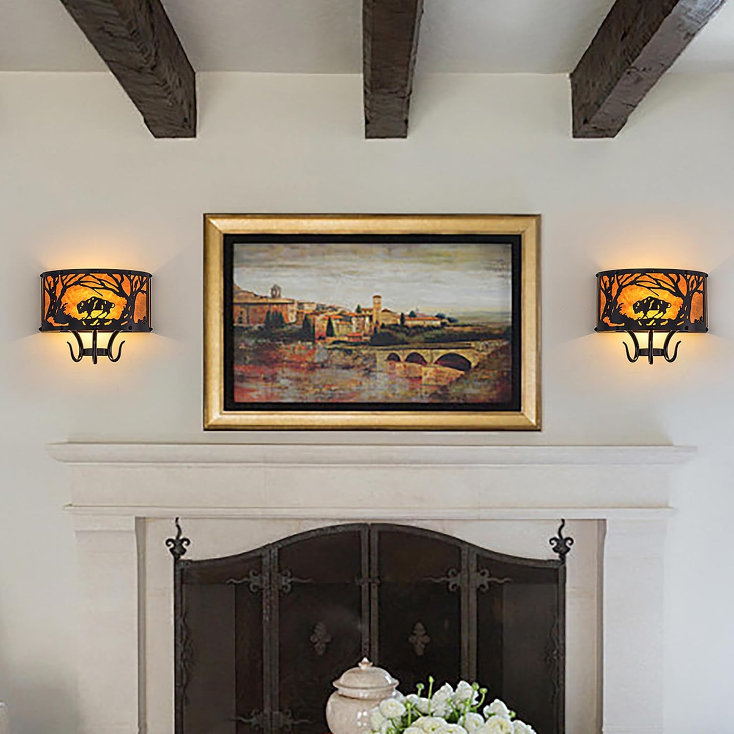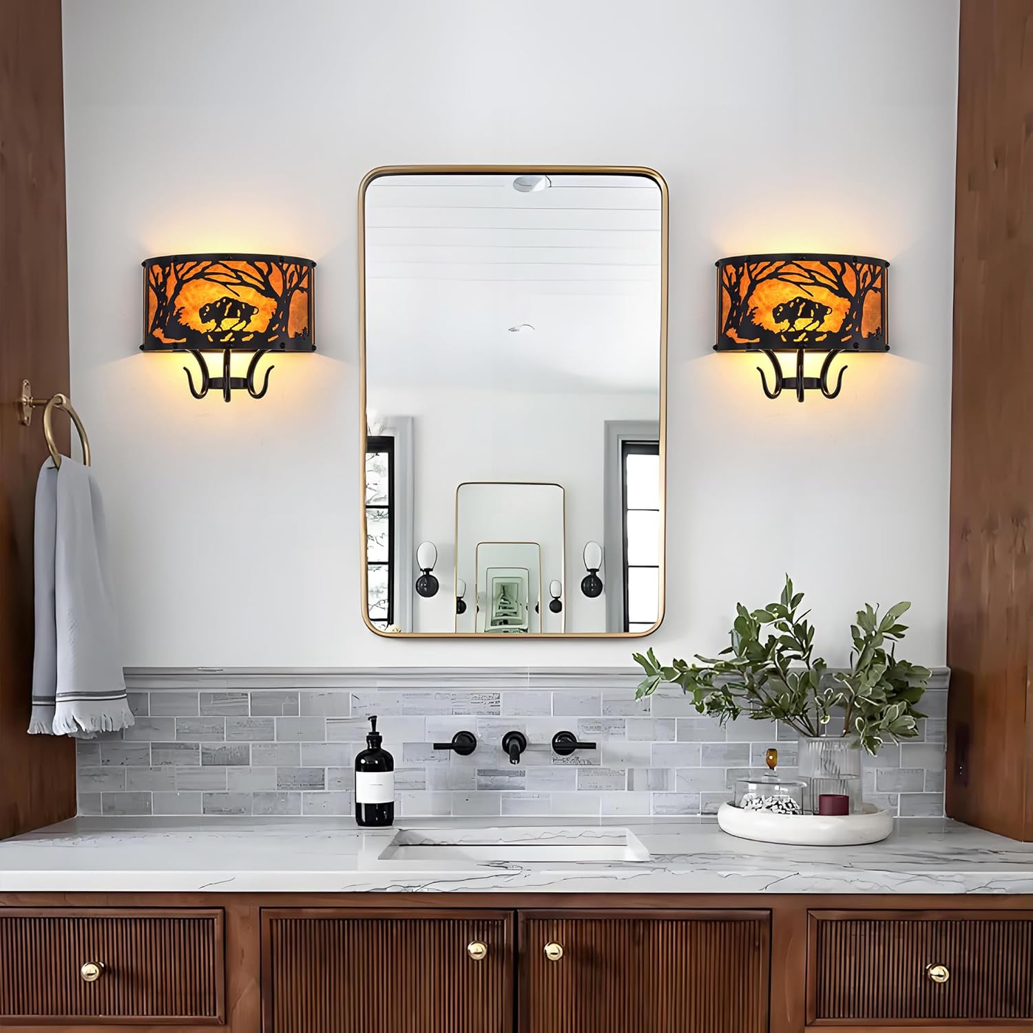 TOCHIC Farmhouse Wall Sconce, Rustic Vintage Indoor Wall Light Fixture, 2-Light Western Cow Wall Mount Light for Bedroom, Hallway, Living Room, Stairway