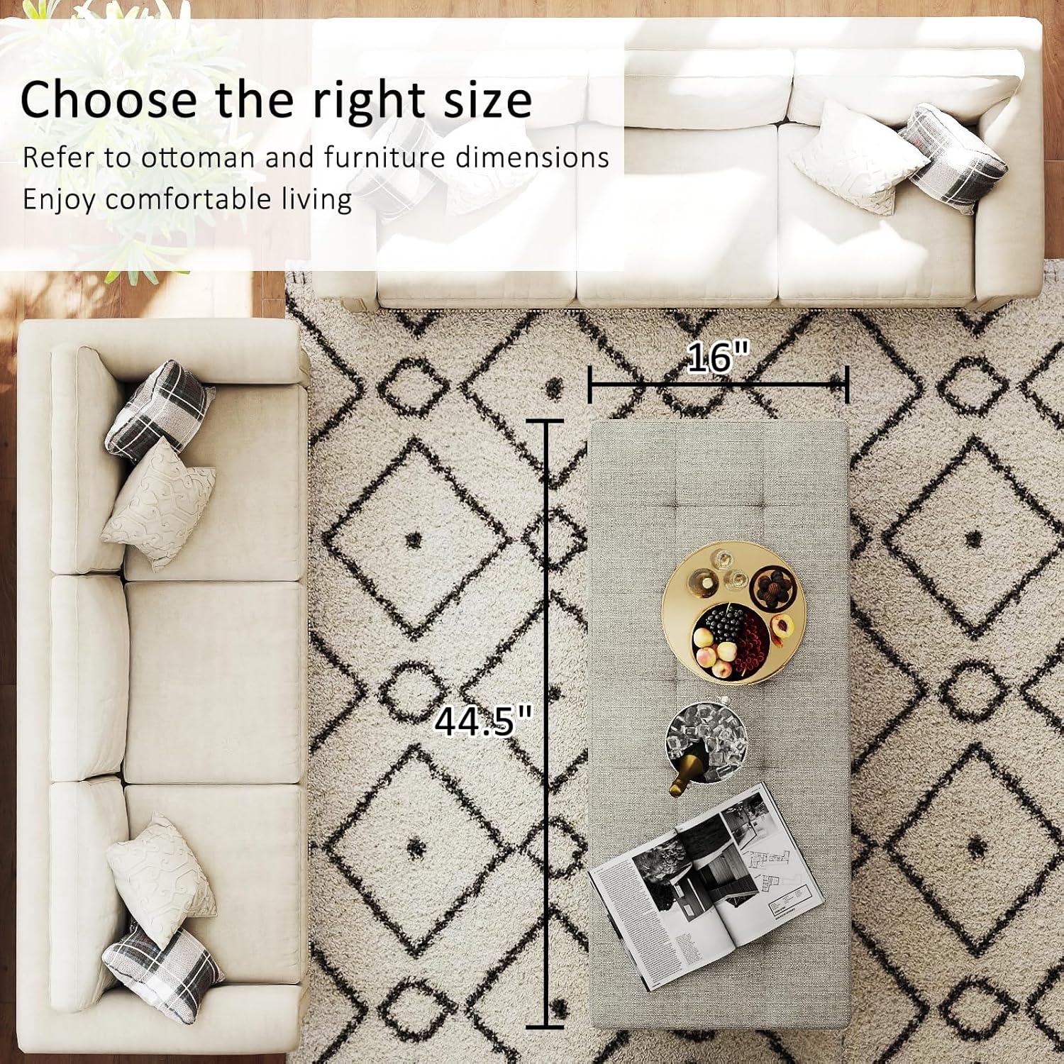 - Comfortable and Safe: The rectangular ottoman upholstery is made of high-end sponge with strong support and good resilience. The 3.2" thick high elastic sponge wraps the corners of the table to prevent bumping and protect your family's safety