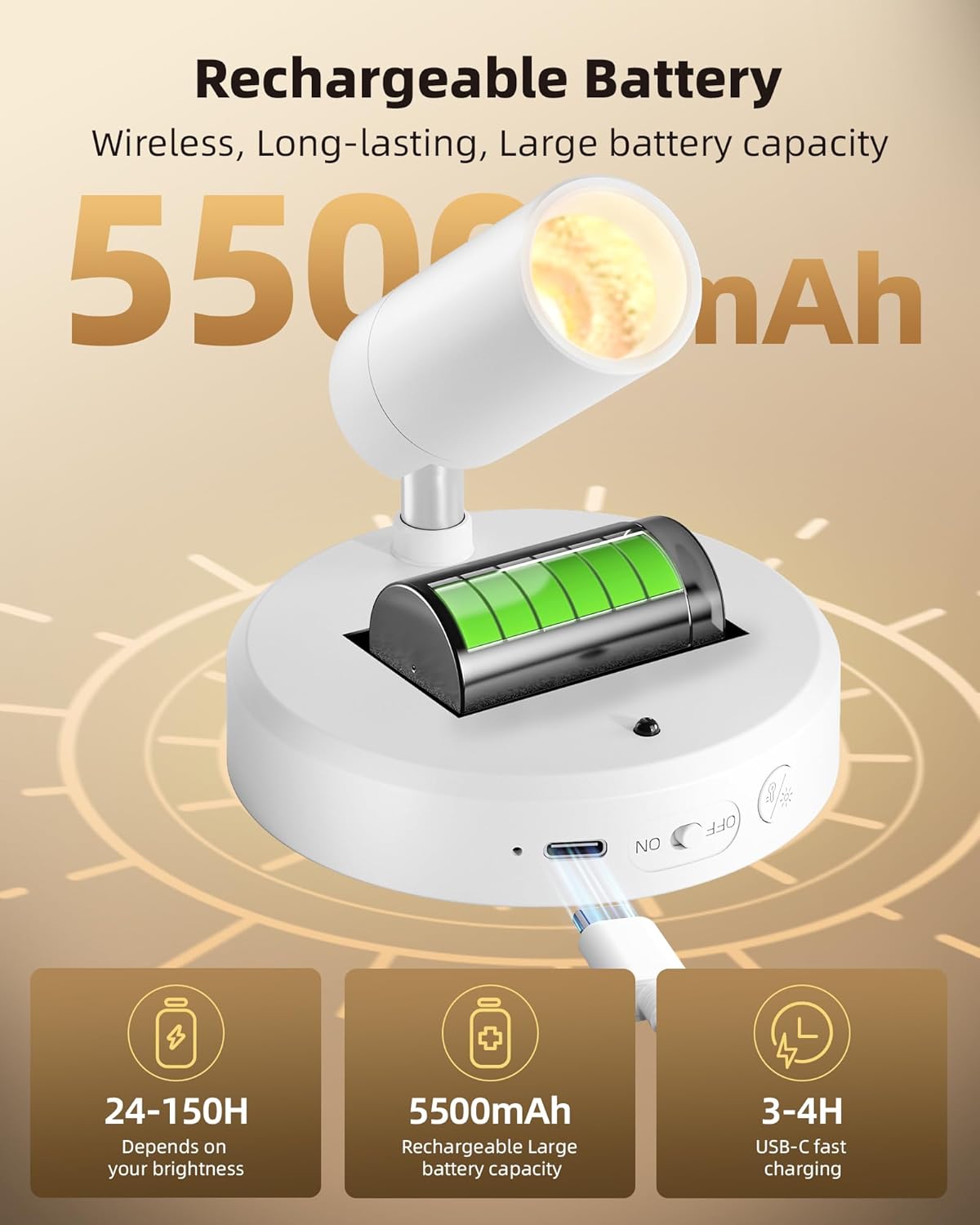 - 5500mAh Rechargeable Spotlight: The EZVALO plant spotlight indoor features a powerful 5500mAh rechargeable battery, Provide up to 150 hours of low brightness and 24-25 hours of high brightness lighting.Using the equipped USB-C fast charging, Battery operated spot light can be fully charged within 4 hours, providing cordless, long-lasting 100 lumens glare-free lighting,Very suitable for indoor plant lighting and picture lighting