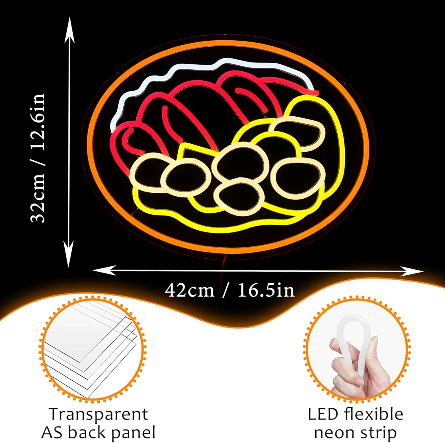 LISIGNVE Curry Meat Dish Neon Sign Beef Curry Sign Neon Light for Wall Decor Curry Rice Led Light Up Sign for Indian Restaurant Kitchen Japanese Thai Style (16.5 * 12.6 In)