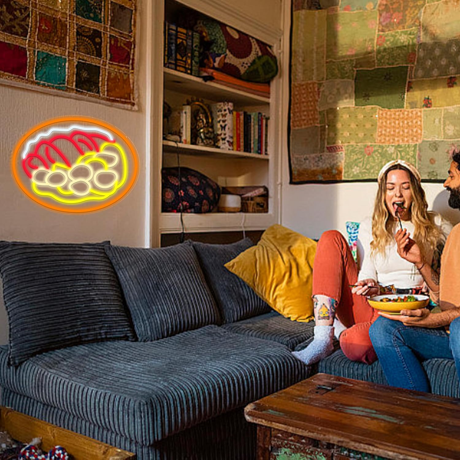 - Applicable scenarios: The curry neon sign can convey an exotic atmosphere. When decorated in restaurants, food stores, markets, food festivals, and kitchens, it can attract the attention of customers and curry enthusiasts.