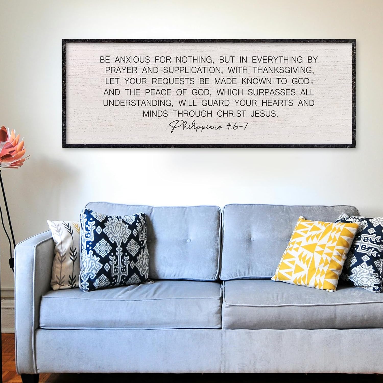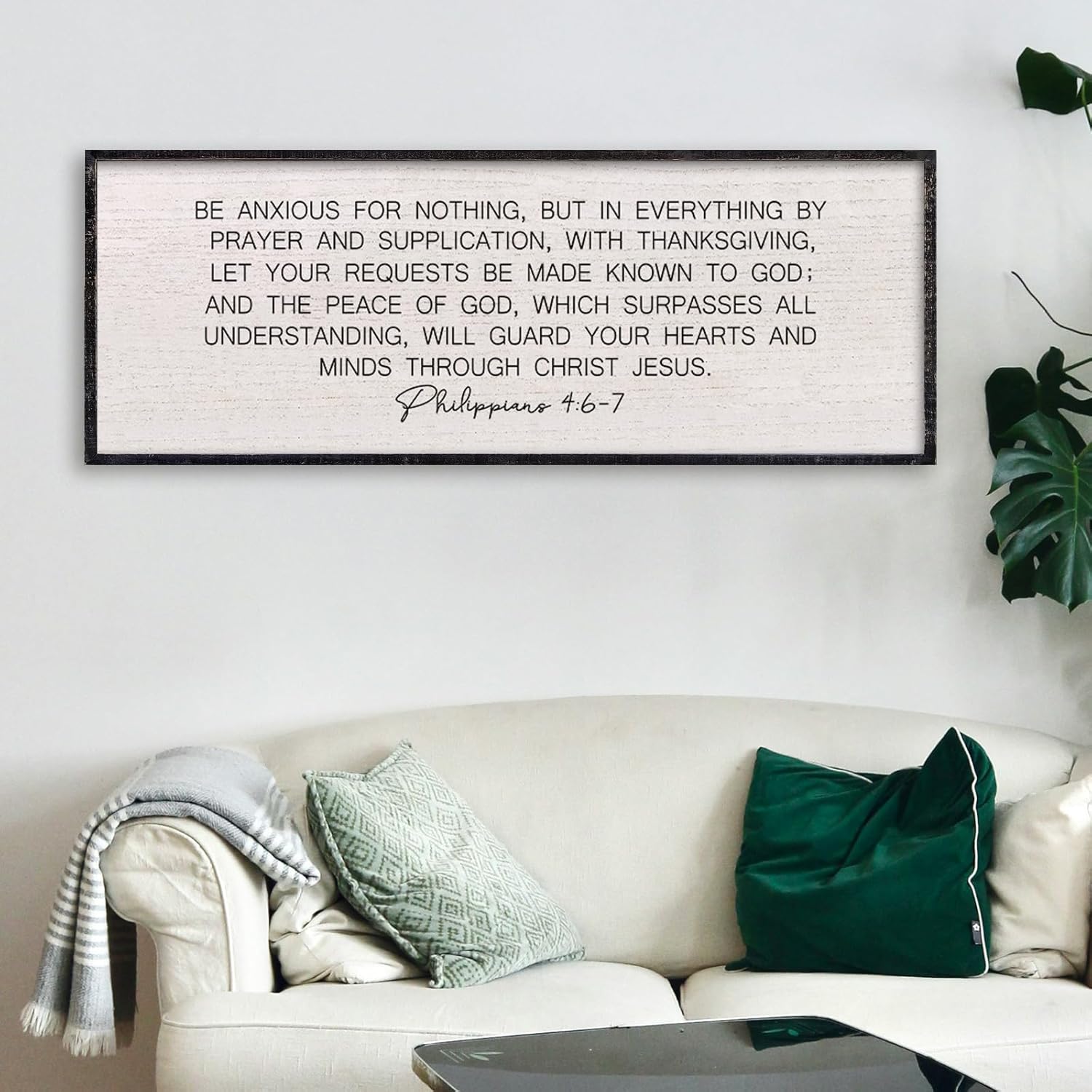 LuZhiQiang Be Anxious for Nothing Wall Decor 32"×12" Philippians 4:6-7 Bible Verse Sign Large Christian Scripture Wood Framed Hanging Decor (Black)