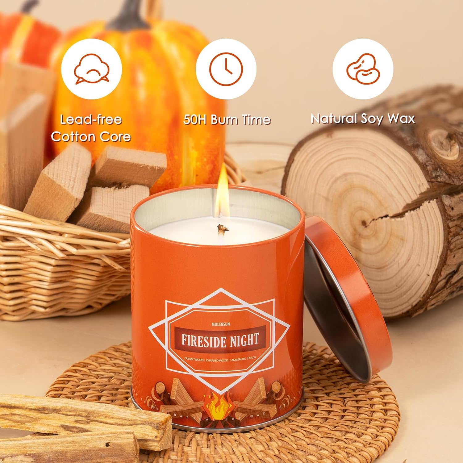 Fireside Night Fall Scented Candle – 9 oz Soy Wax in Travel-Friendly Reusable Tin, Non-Toxic & Clean Burning, 50-Hour Burn – Cozy Autumn Fragrance, Holiday Gift & Fall Decor for Women & Men