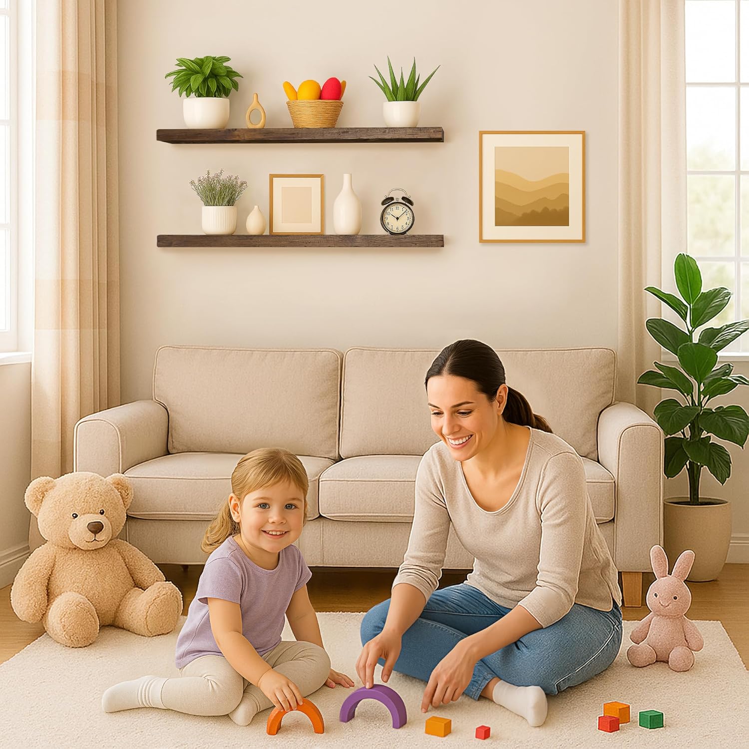 - DISTRESSED FLOATING SHELVES: Crafted from pine wood, our floating shelves showcase a rustic and distressed aesthetic. Each shelf is individually hand-distressed, paying attention to intricate details. This meticulous process ensures that every beam possesses its own distinctive distressed look, adding character to your space.