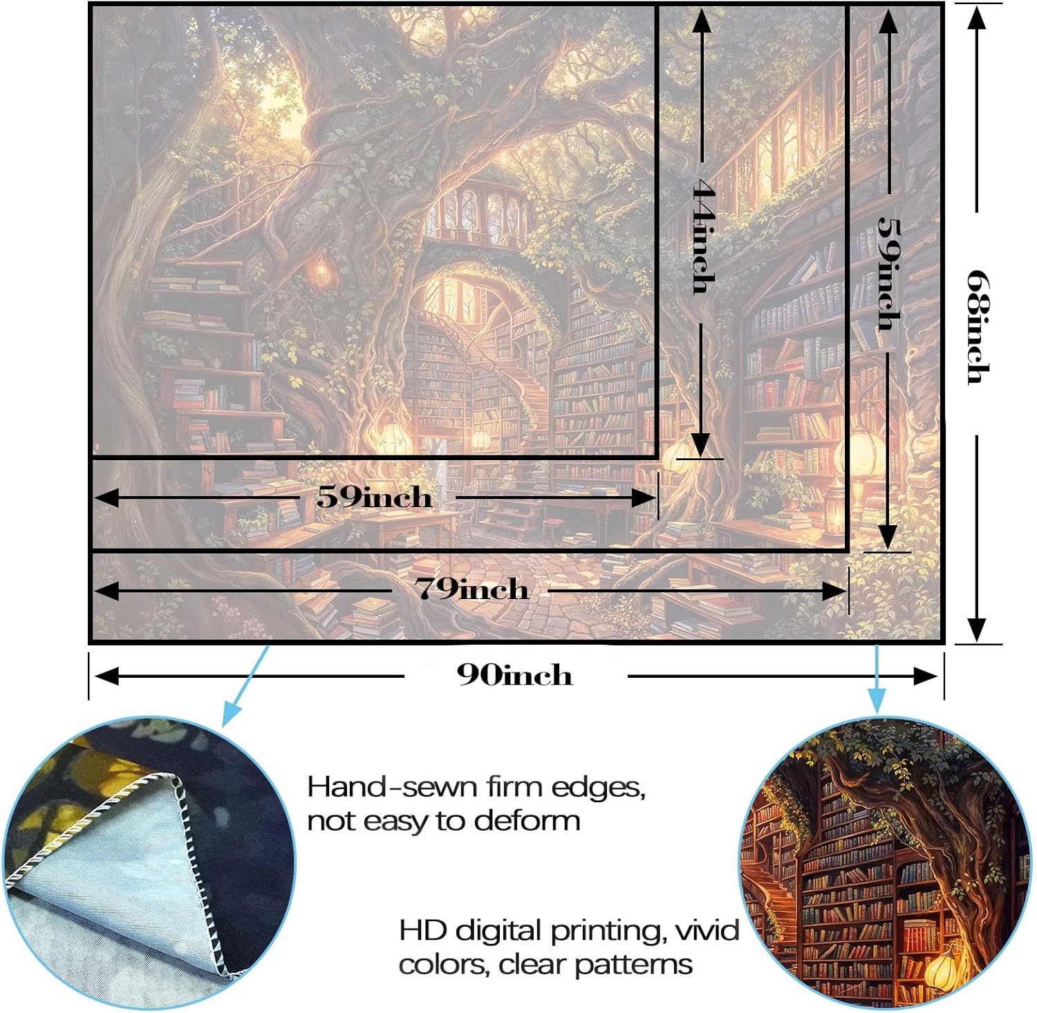 - Multiple Size Options: Available in 90L''x 68W'', 80L''x 60W'', and 60L''x 44W''(L for longer side, W for shorter side). These book tapestries fit various spaces—from large living room walls to small bedroom accents, ensuring a tailored decor solution