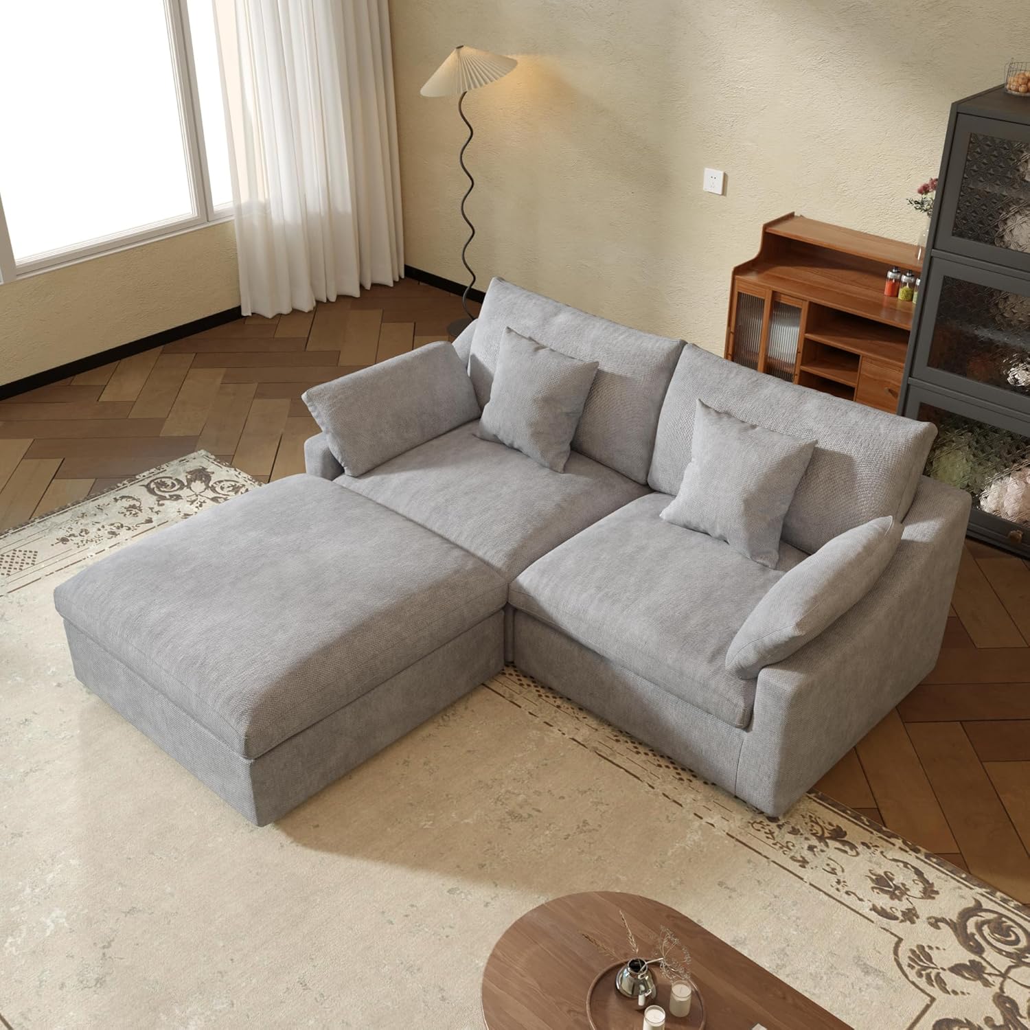 - β [Comfortable Cushions]The cushion of this modular sofa is filled with down and velvet, increasing the comfort and rebound performance of the sofa cushion, bringing you a more comfortable sitting and lying feeling, allowing you to relax completely on the cloud sofa.