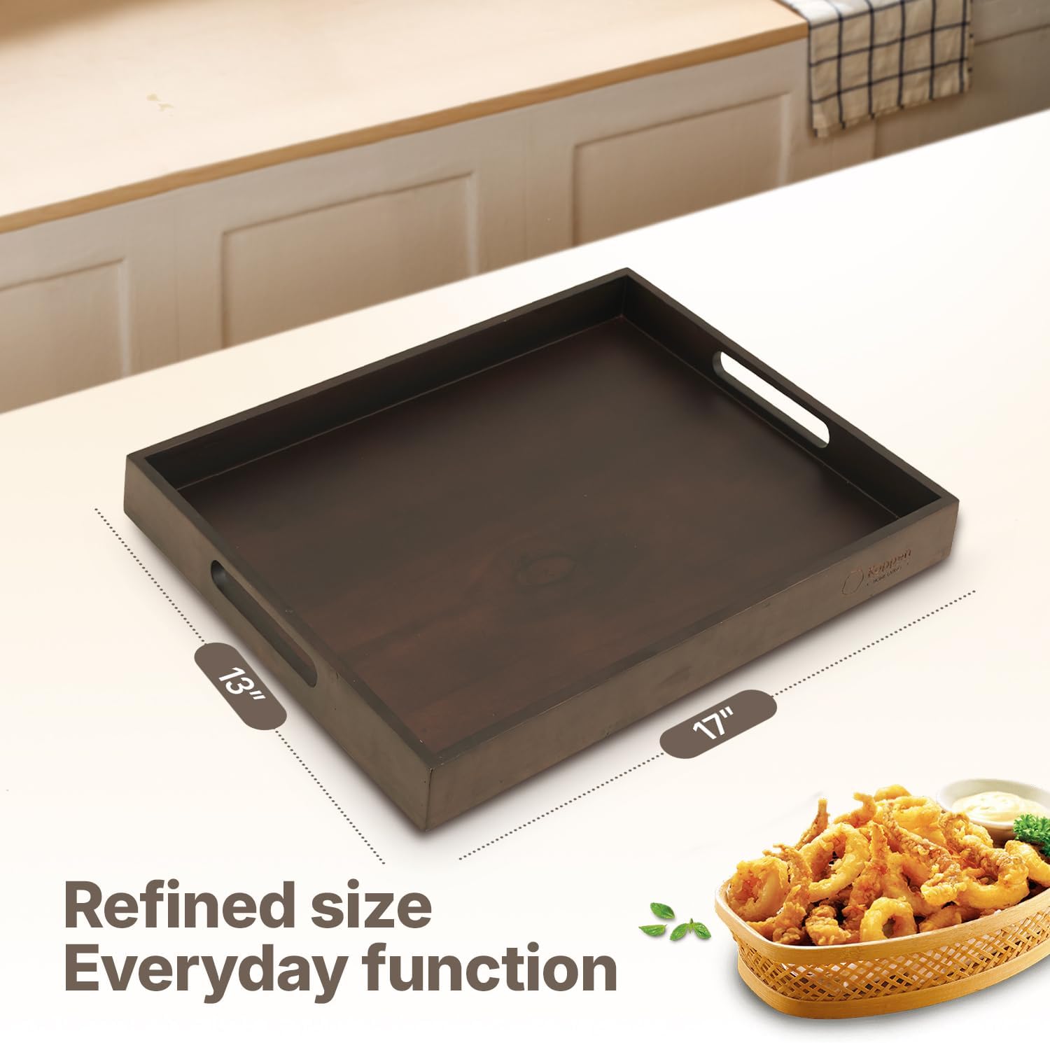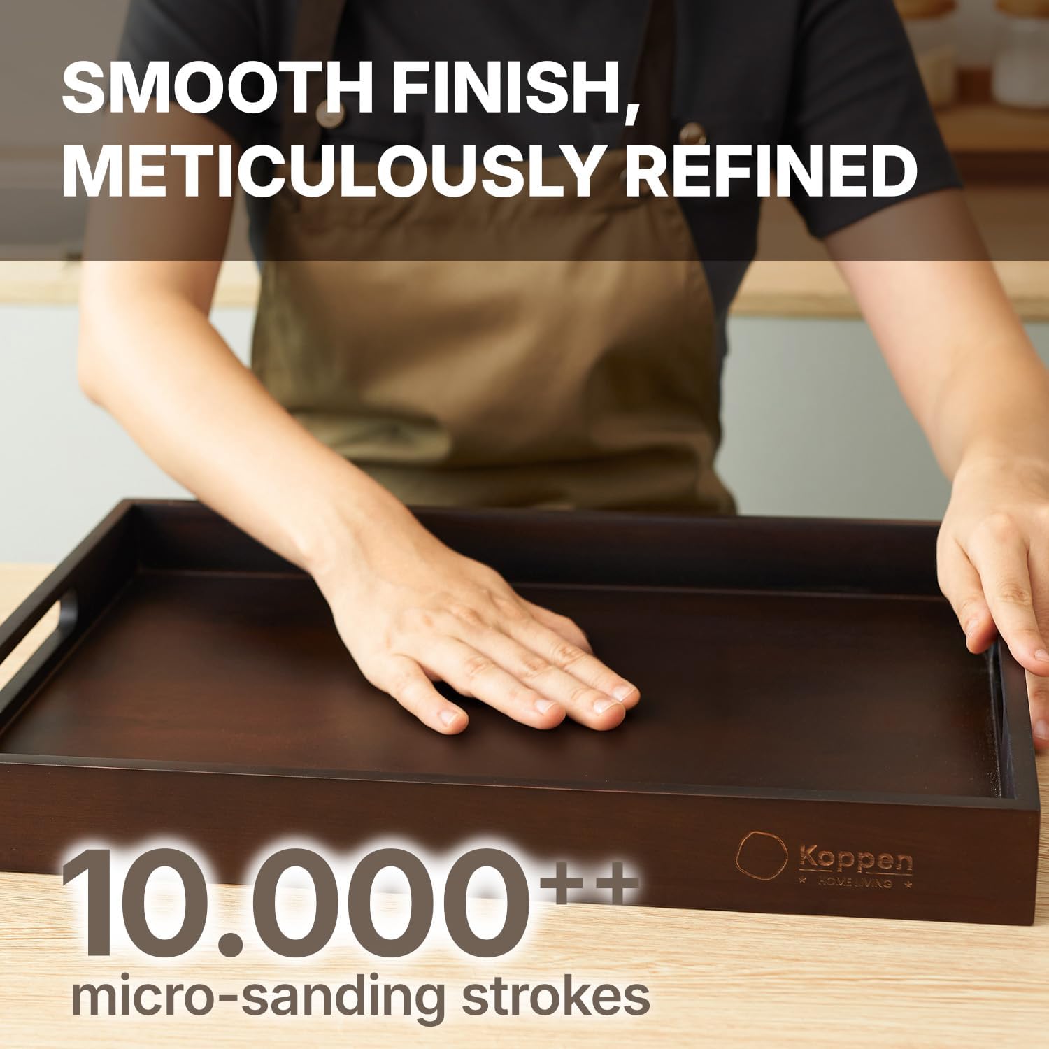 - [METICULOUSLY REFINED]: Our wooden serving tray is hand-finished through over 10,000 micro-sanding strokesâleaving the surface irresistibly soft, almost mental-like to the touch. Perfect as a wooden decorative tray, rectangle tray, or coffee tray for tray decor, it elevates food trays for eating, bed food trays for adults, serving platters and trays for parties, or party serving trays and platters.