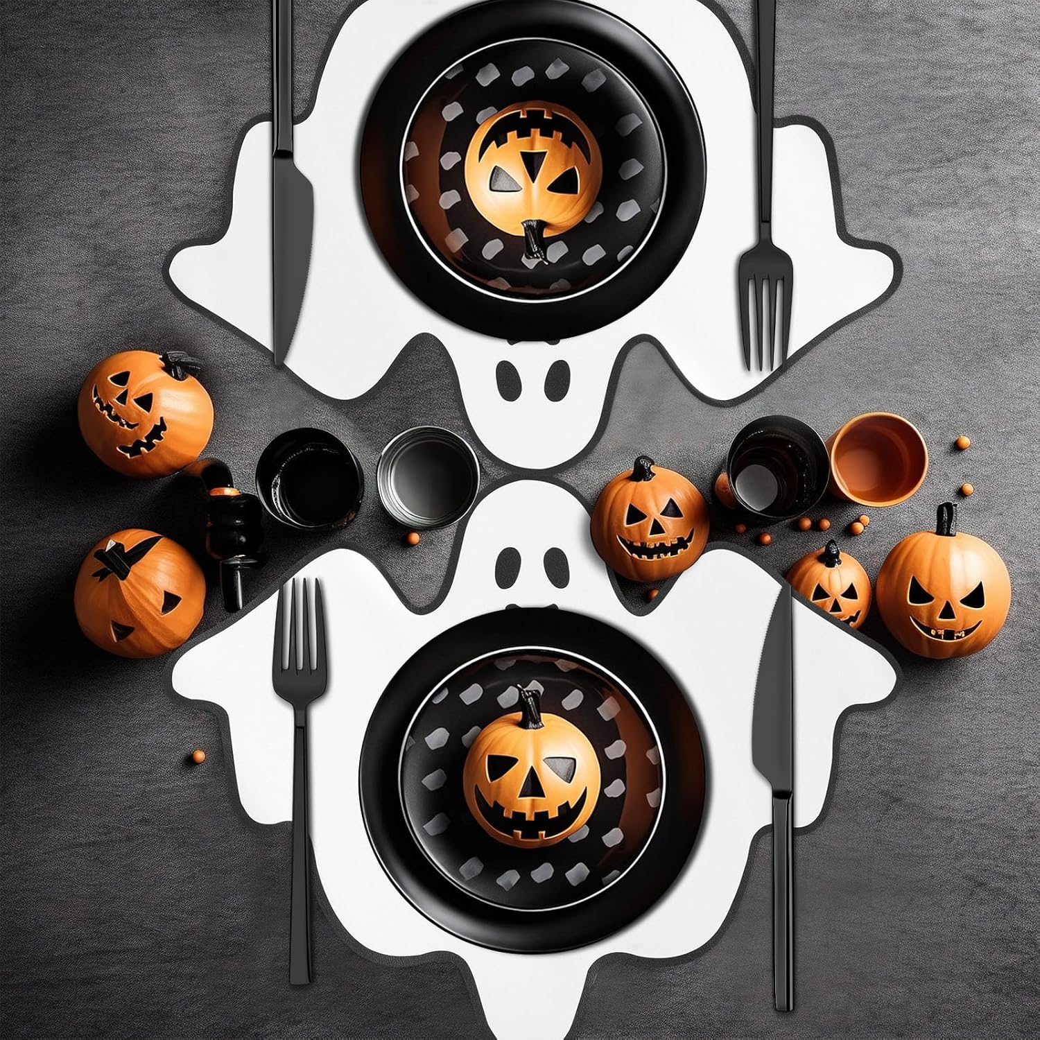 - Cute Ghost Design: our Halloween placemats are printed with classic Halloween ghost elements, the unique ghost pattern is cute and vivid, which can easily decorate your dining table or create a stunning centerpiece for your Halloween table, add fun and festive atmosphere