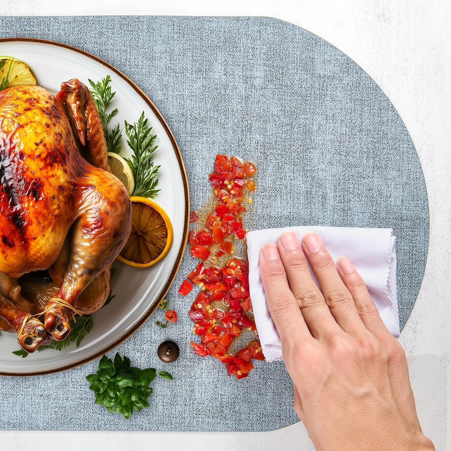 - 【Reversible & Non-slip Design】Say goodbye to slipping placemats. The subtly textured, double-sided surface resists wear, stays in place, and helps reduce noise for a quieter, more sophisticated dining experience. The tasteful colors and elegant oval shape add charm to any table—perfect for modern, farmhouse decor or light luxury interiors.