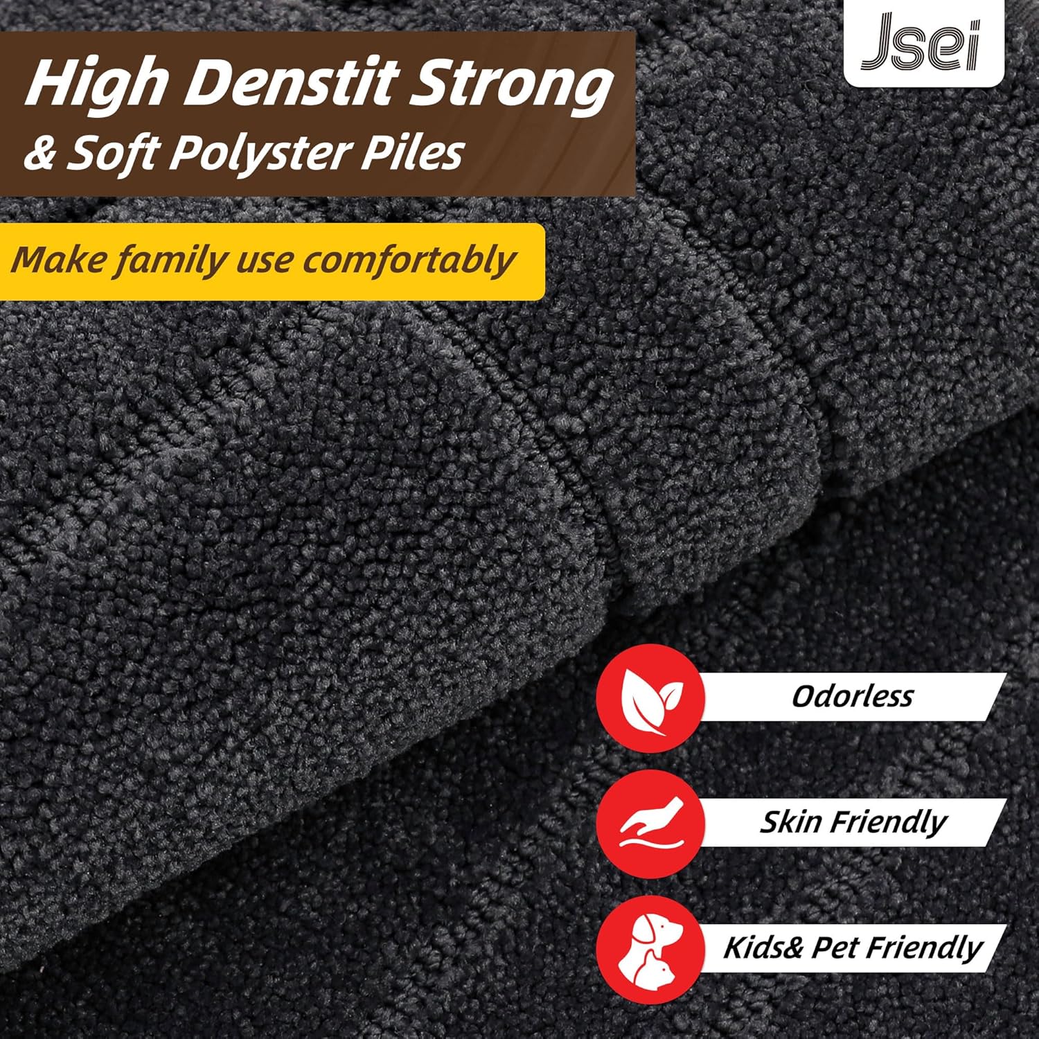 JSEI Entryway Rugs Doormat 24"x36", Non-Slip Dirt Trapper Door Mats Indoor, Washable Absorbent and Stain Resist Welcome Floor Mat for Front Door, Dog Door Mat, Muddy Wet Shoes & Paws, Dark Grey