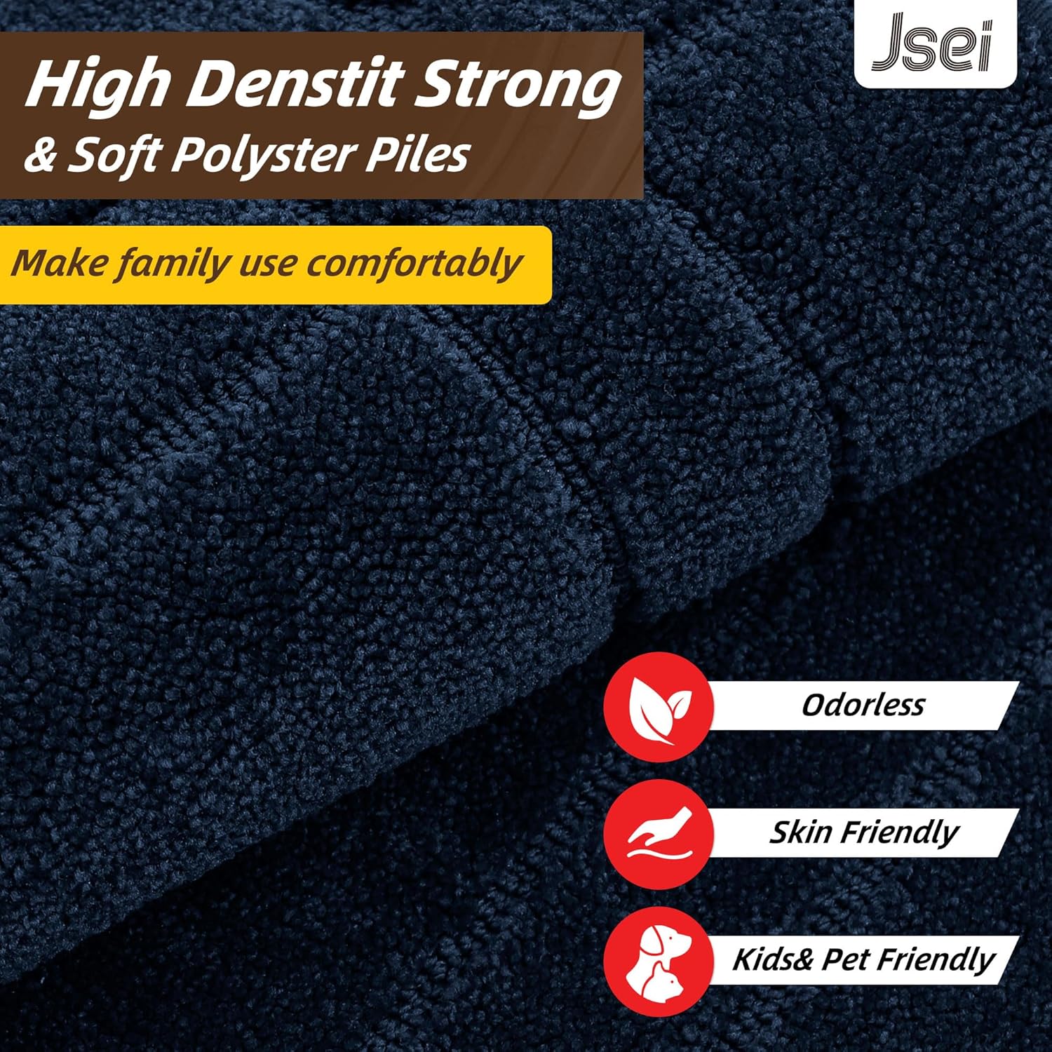JSEI Entryway Rugs Doormat 20"x32", Non-Slip Dirt Trapper Door Mats Indoor, Washable Absorbent and Stain Resist Welcome Floor Mat for Front Door, Dog Door Mat, Muddy Wet Shoes & Paws, Navy Blue