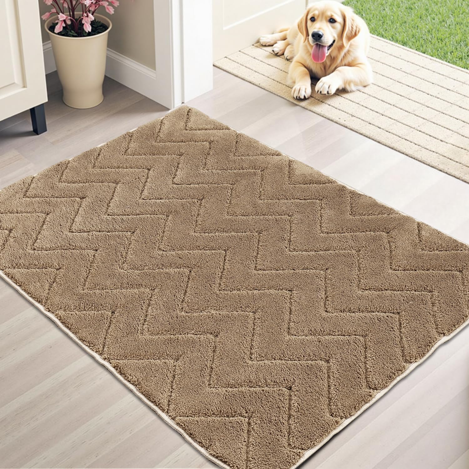- Catch Dirt & Moisture: Made of soft and absorbent fiber, it effectively trap moisture and debris from wet shoes or muddy paws, keeping your floors clean dry, and safe—especially on rainy or snowy days. We recommend choosing the largest mat that fits your space