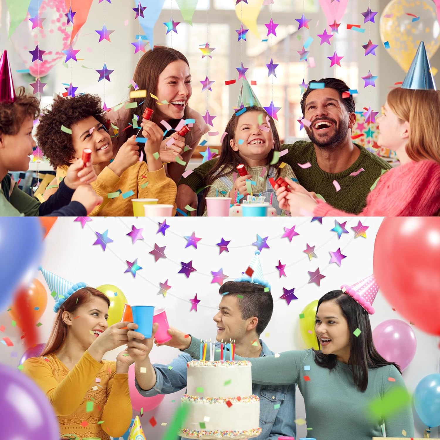 Patelai Glitter Star Garland Banner Decor 130 Feet Star Hanging Bunting Banner Twinkle Backdrop for Homecoming Classroom Wedding Birthday Halloween Christmas Party Supplies(Iridescent Purple)