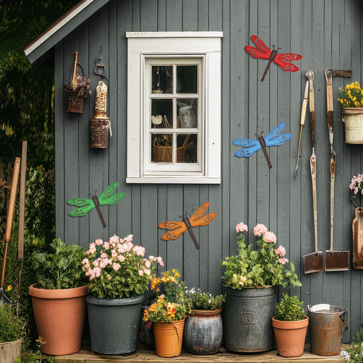 Metal Dragonfly Wall Decor, 4 Pack 14inch Retro Metal Dragonfly Wall Hanging Sculpture Decor for Outdoor, Yard Patio Fence Garden Outside Decorations